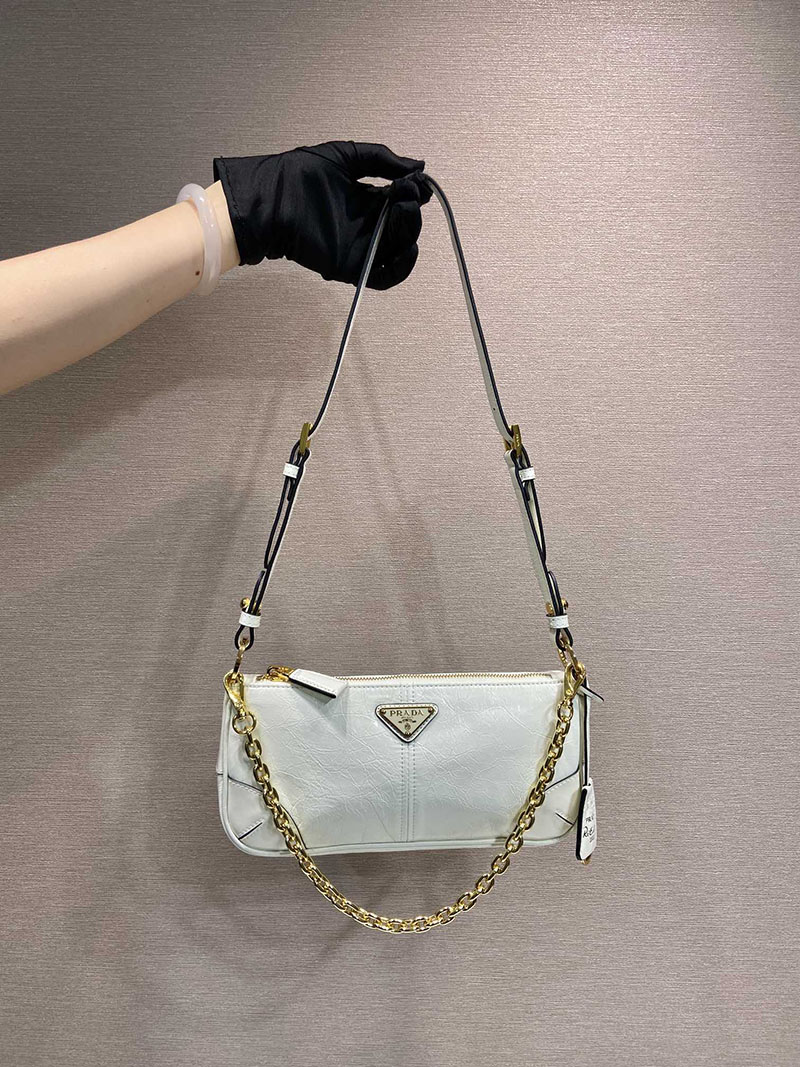 プラダを象徴する革新的な再生ナイロン素材、Re-Nylonの汎用性と実用的なデザインが際立つショルダーバッグ。機能的なシルエットに、レザーのディテールとアイコニックなエナメルメタルのトライアングルロゴをあしらいました。