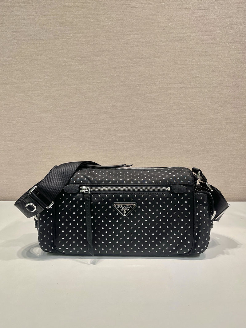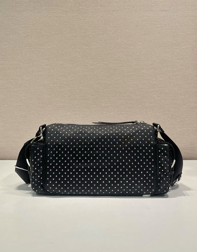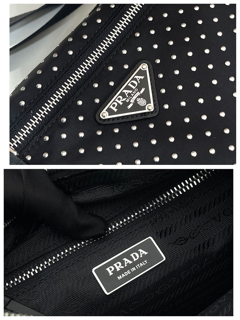 プラダ アウトレット PRADA サイドフラップポケット スタッズ付 Re-Nylon バッグ 1BC236_2HGV_F0002_V_OOO ブラック H品 プラダ ホーボーバッグ
