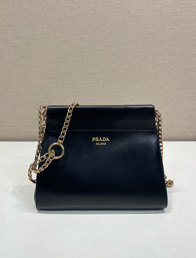 現代的でフェミニンな魅力を放つプラダ アンシェネ バッグは、ヴィンテージライクなシルエットを想起させながらも、新たなボリューム感とプロポーションで再構築されています。レザーのデザインには、モダンで洗練された印象を添えるチェーンハンドルがあしらわれています。