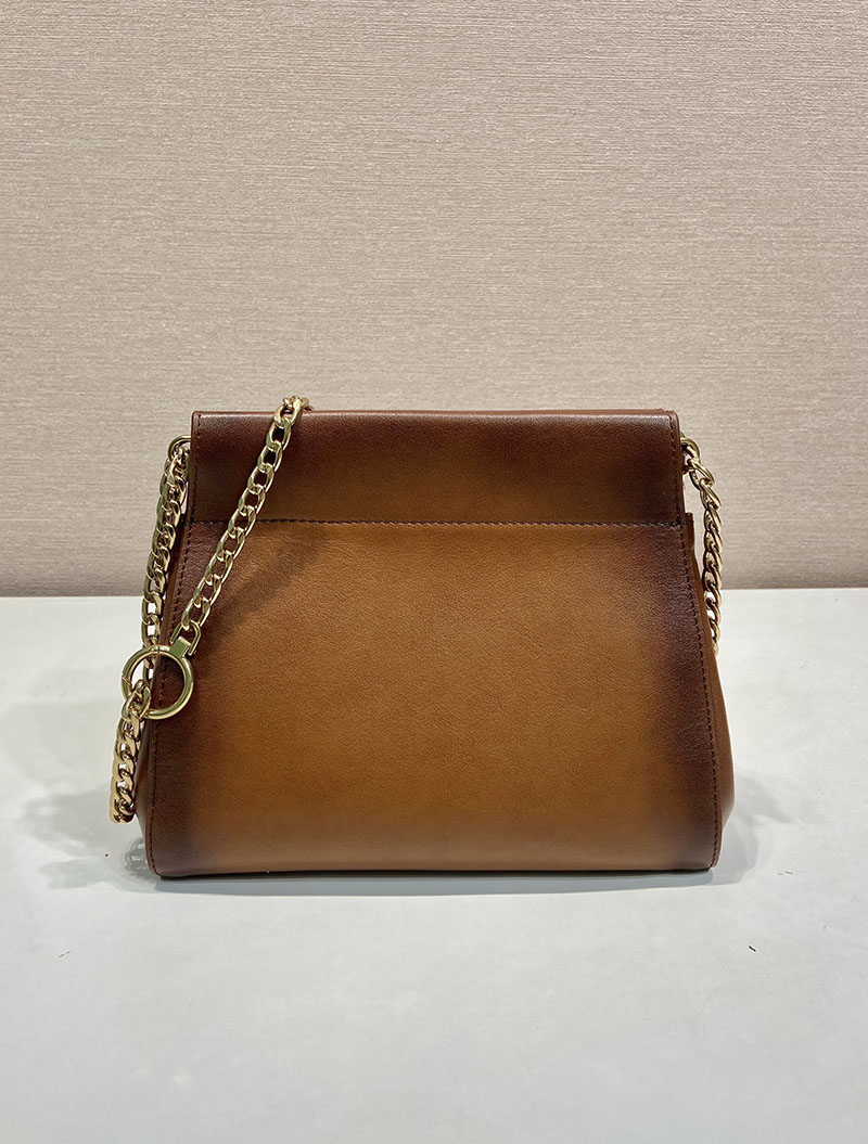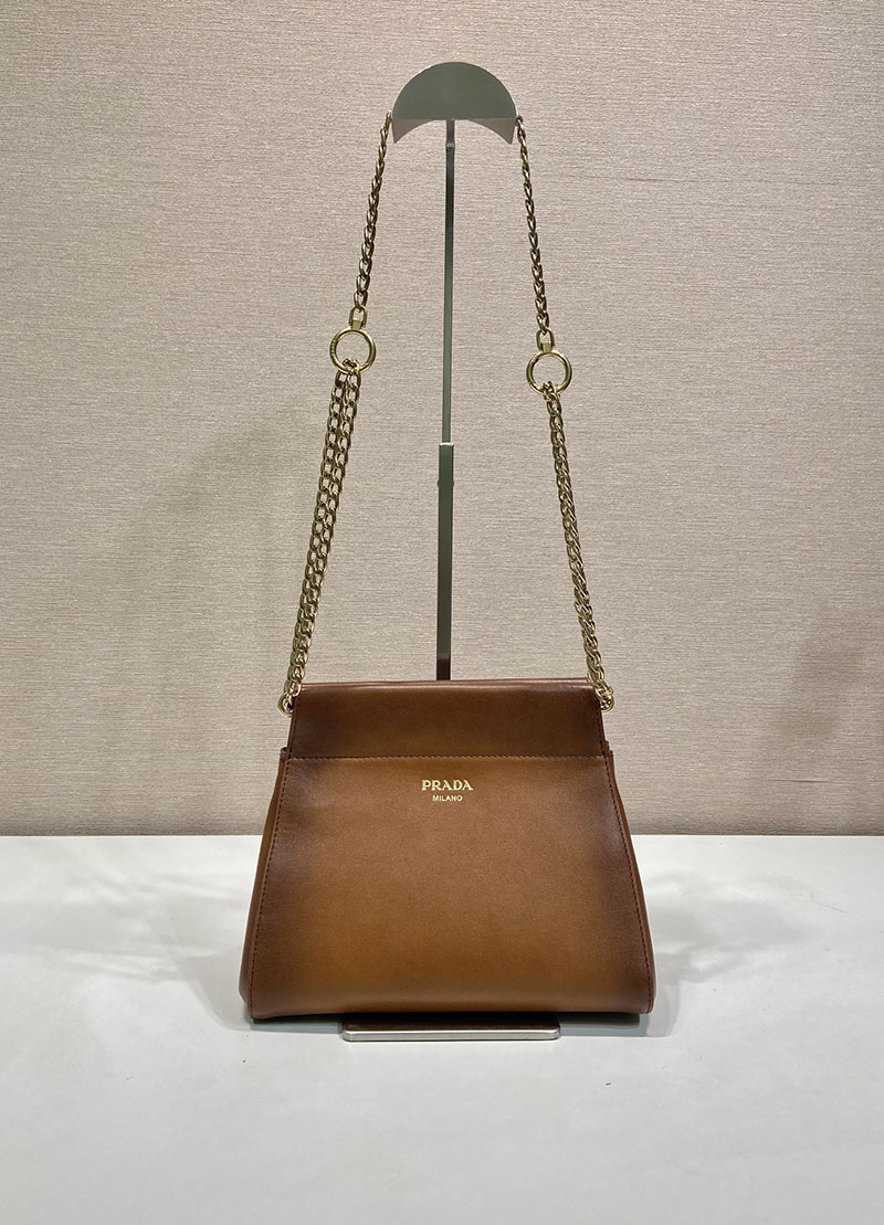 現代的でフェミニンな魅力を放つプラダ アンシェネ バッグは、ヴィンテージを想起させる印象的なシルエットを、新たなプロポーションで再解釈しています。フォルムの探求は、レザーの質感に奥行きと立体感をもたらす革新的なクラフツマンシップとともに進められています。グラデーション効果によって豊かに仕上げられたデザインは、モダンで洗練された印象を添えるチェーンハンドルで彩られています。