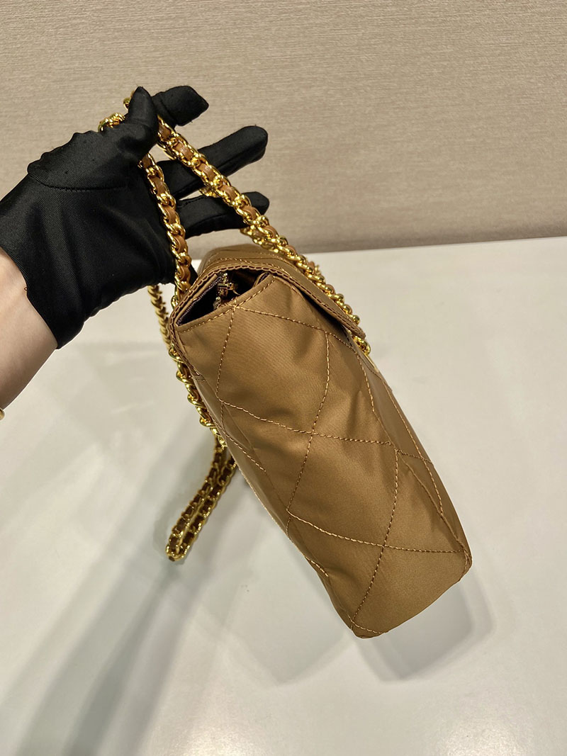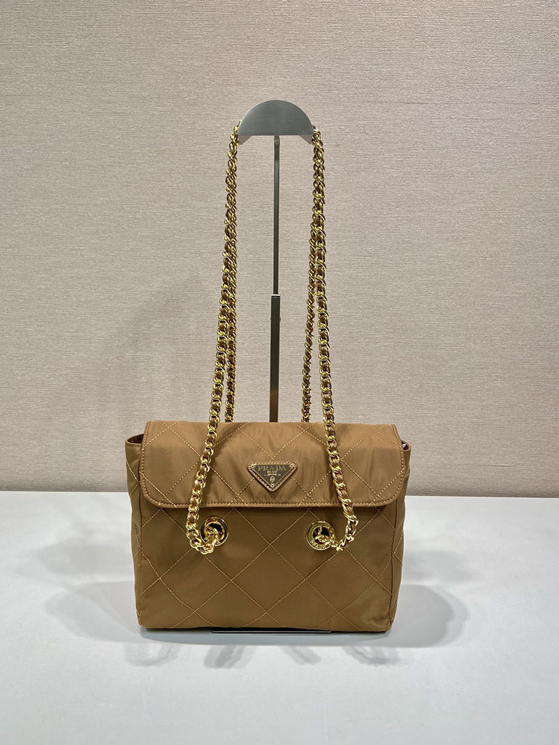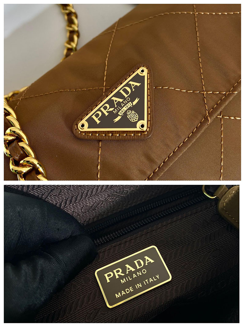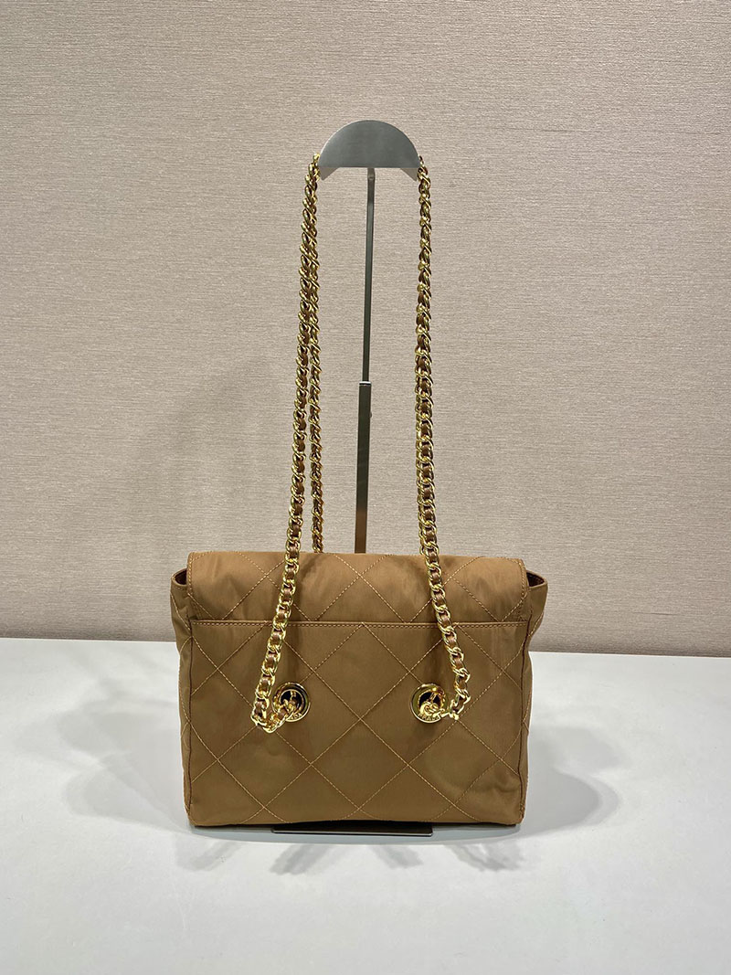 プラダ アウトレット PRADA 三角ロゴ テスート ナイロン キルティン チェーン ショルダー バッグ 1BD620 ブラウン H品 プラダ ナイロンバッグ アウトレット