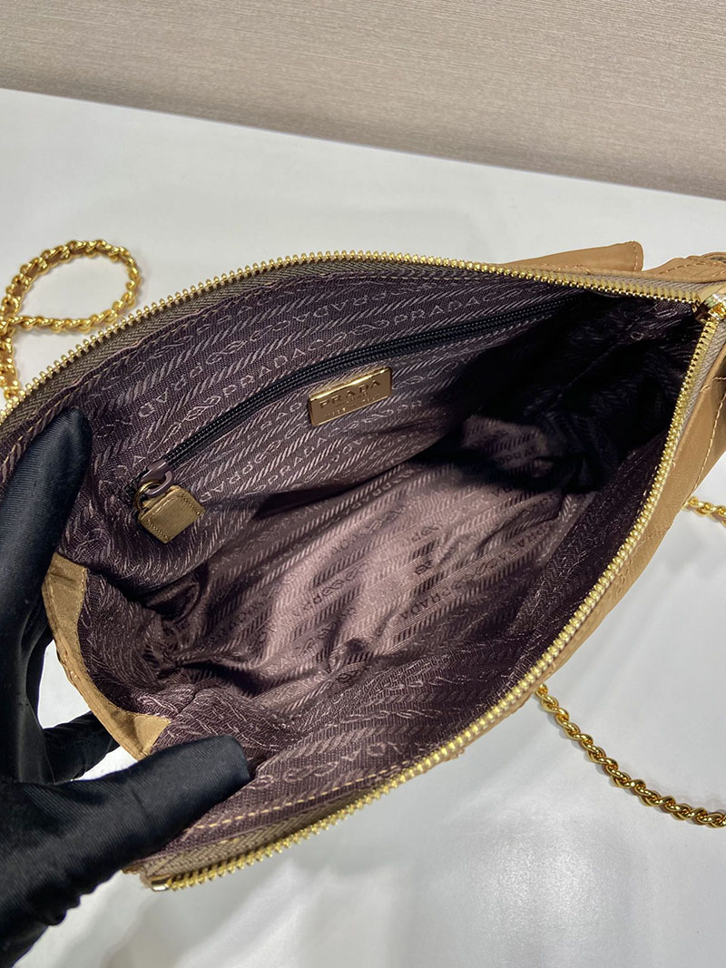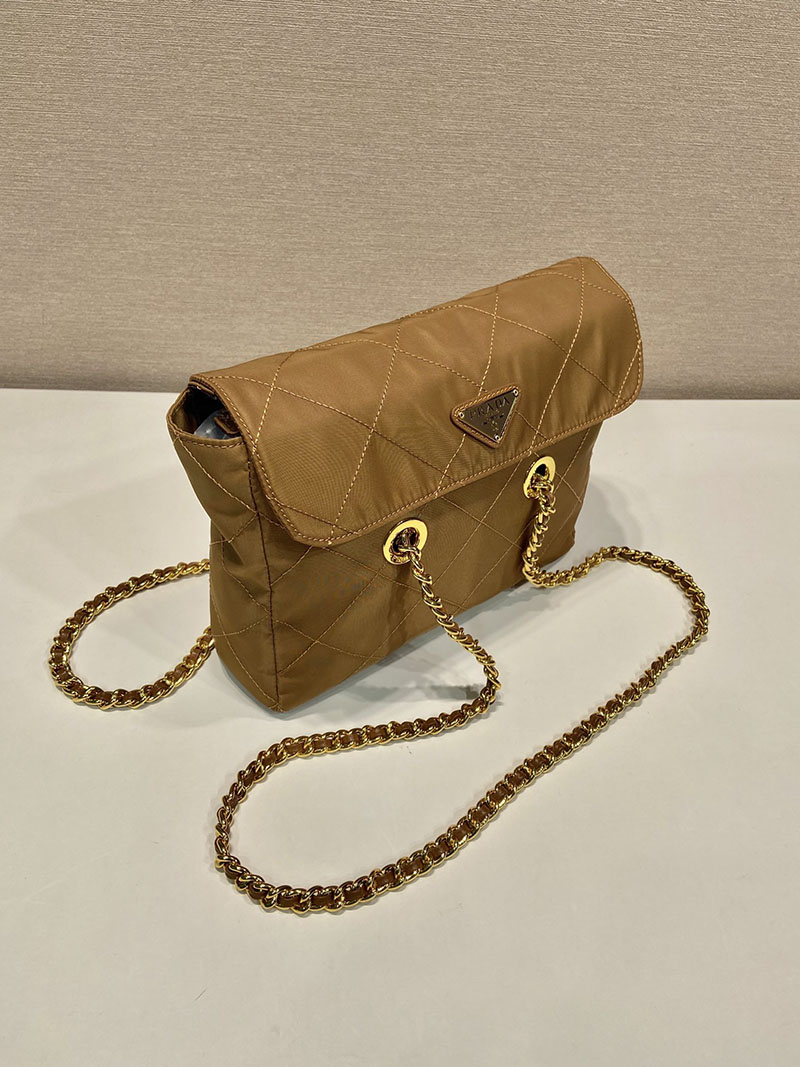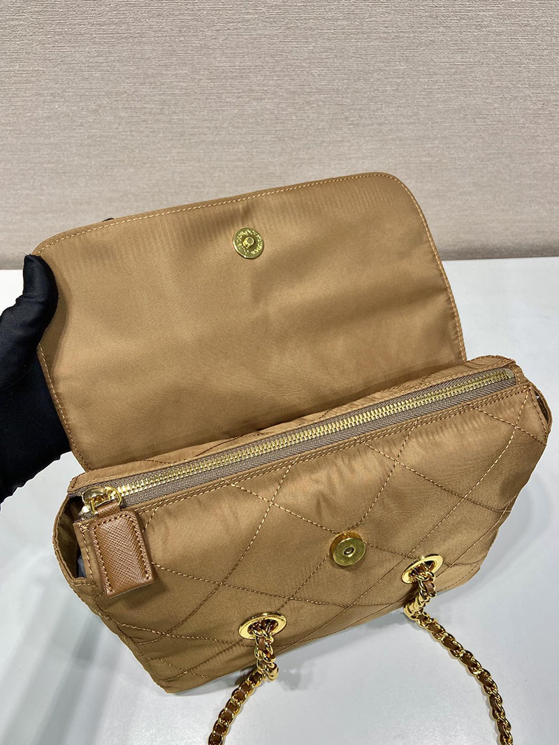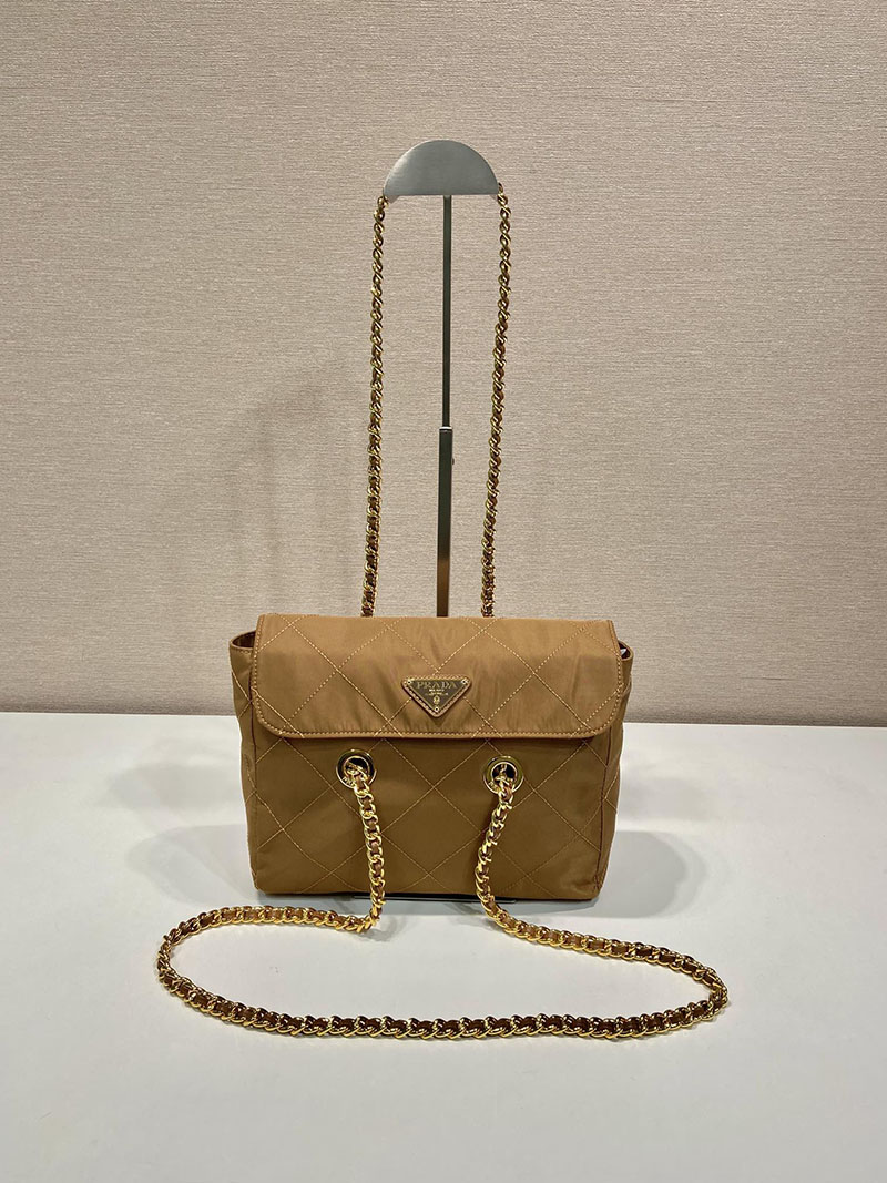 プラダ アウトレット PRADA 三角ロゴ テスート ナイロン キルティン チェーン ショルダー バッグ 1BD620 ブラウン H品 プラダ ナイロンバッグ アウトレット