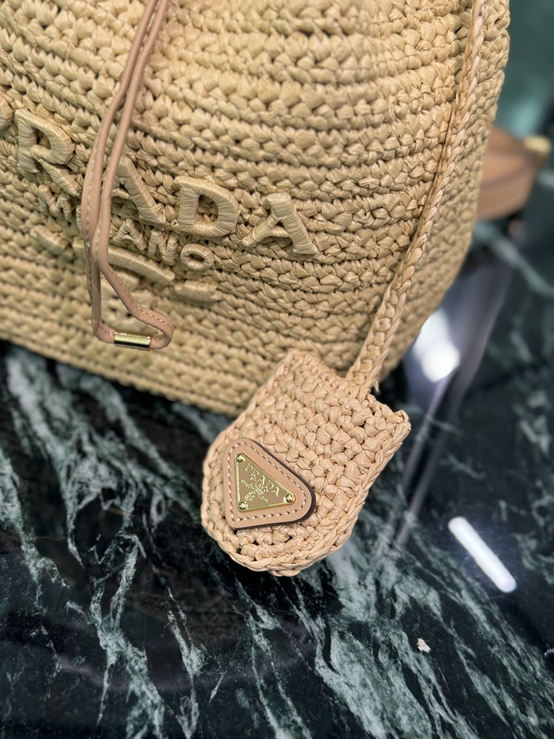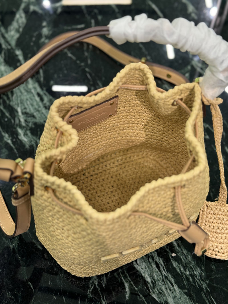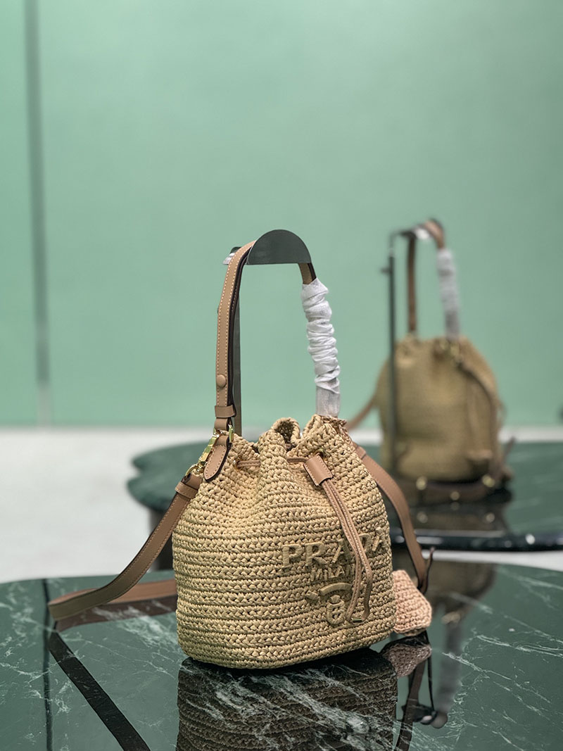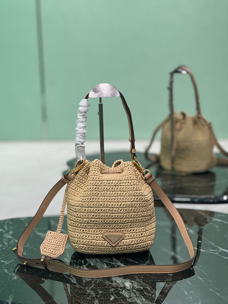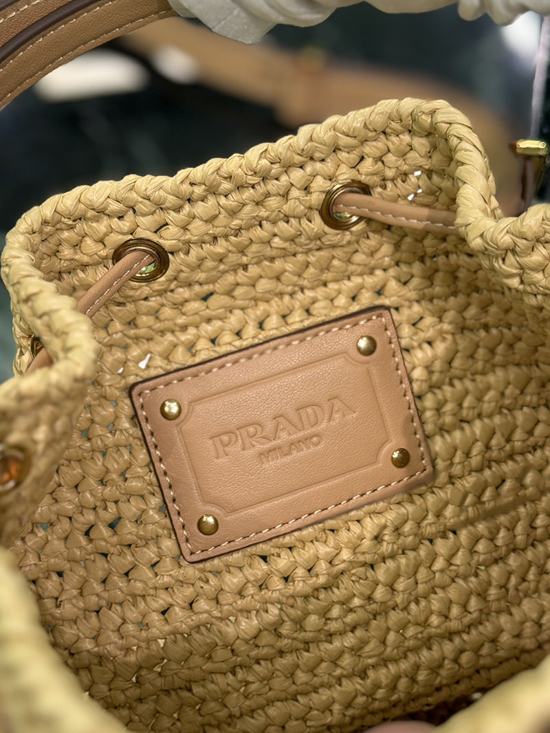 プラダ アウトレット PRADA クロシェxレザー ミニバケットバッグ 1BE068_2M2T_F0018_V_OUO ナチュラル H品 プラダ 巾着バッグ アウトレット
