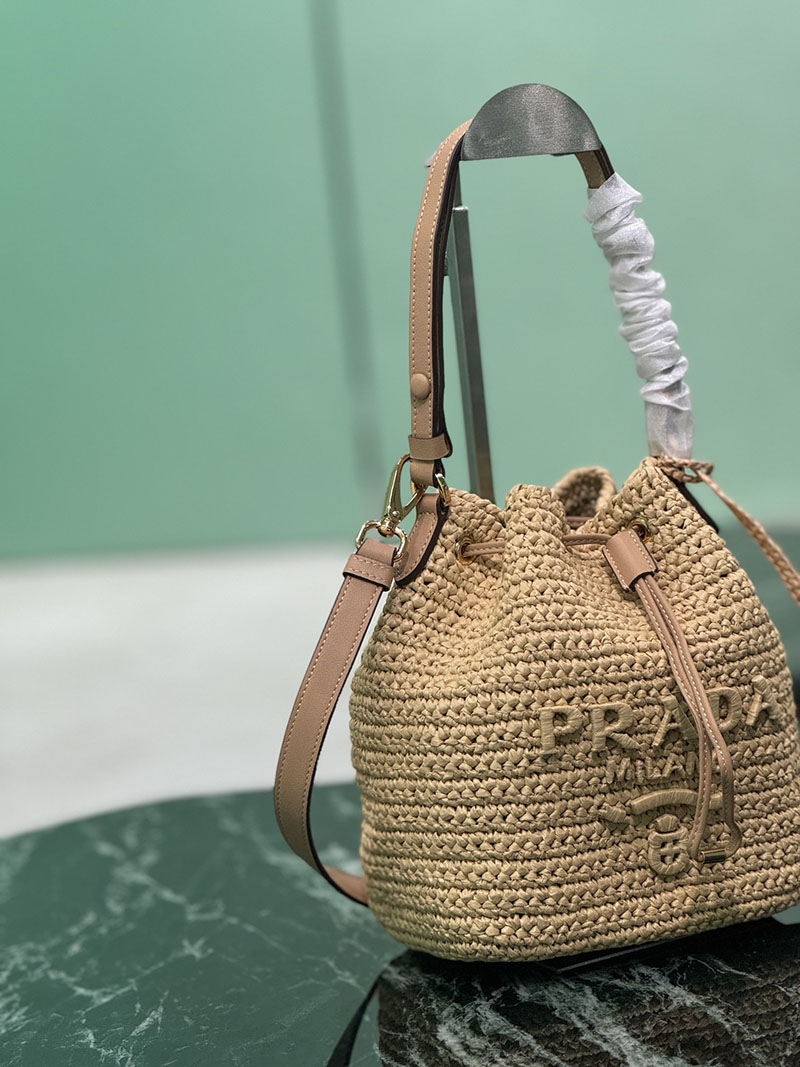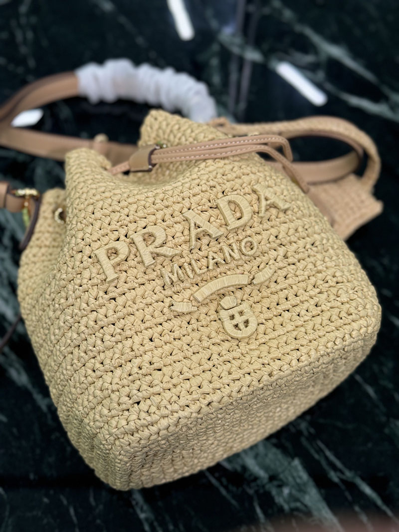 “プラダ アウトレット PRADA クロシェxレザー ミニバケットバッグ 1BE068_2M2T_F0018_V_OUO ナチュラル H品 プラダ 巾着バッグ アウトレット” の口コミを投稿します