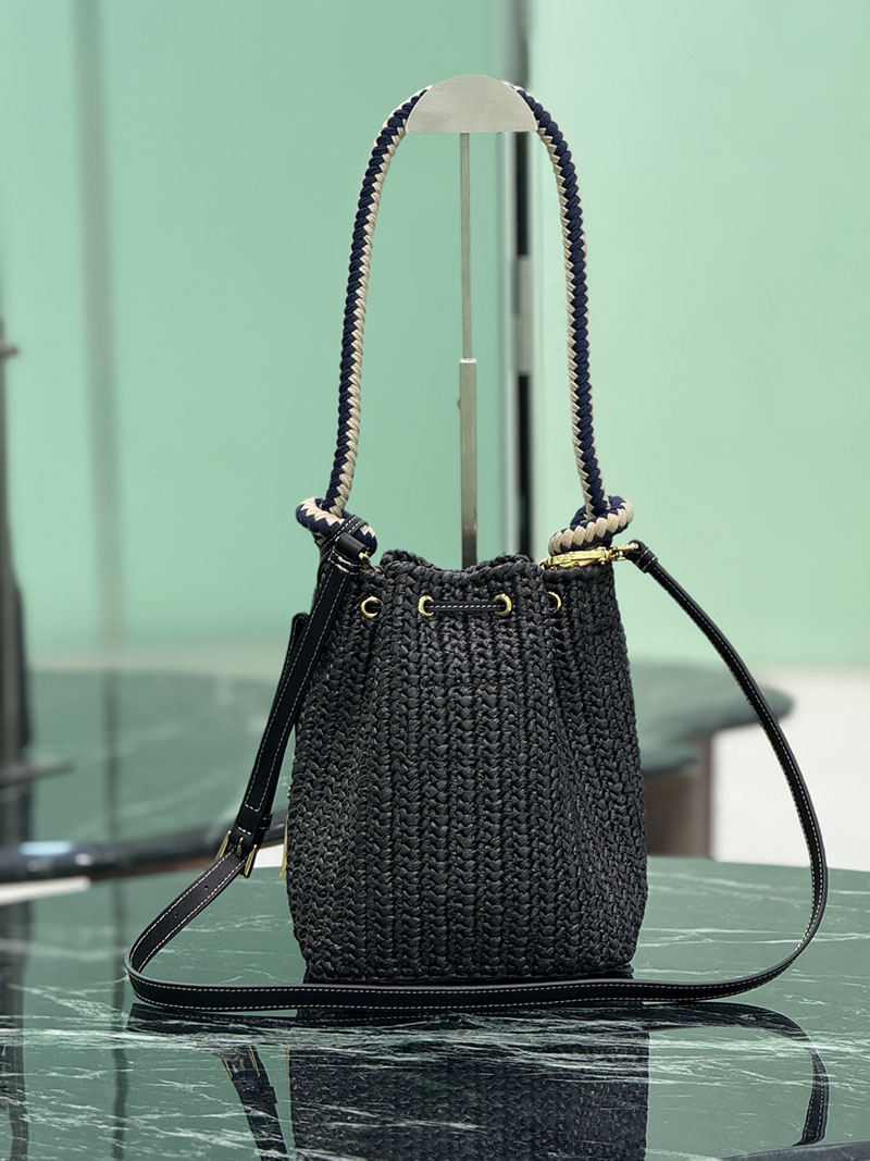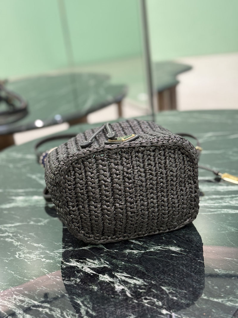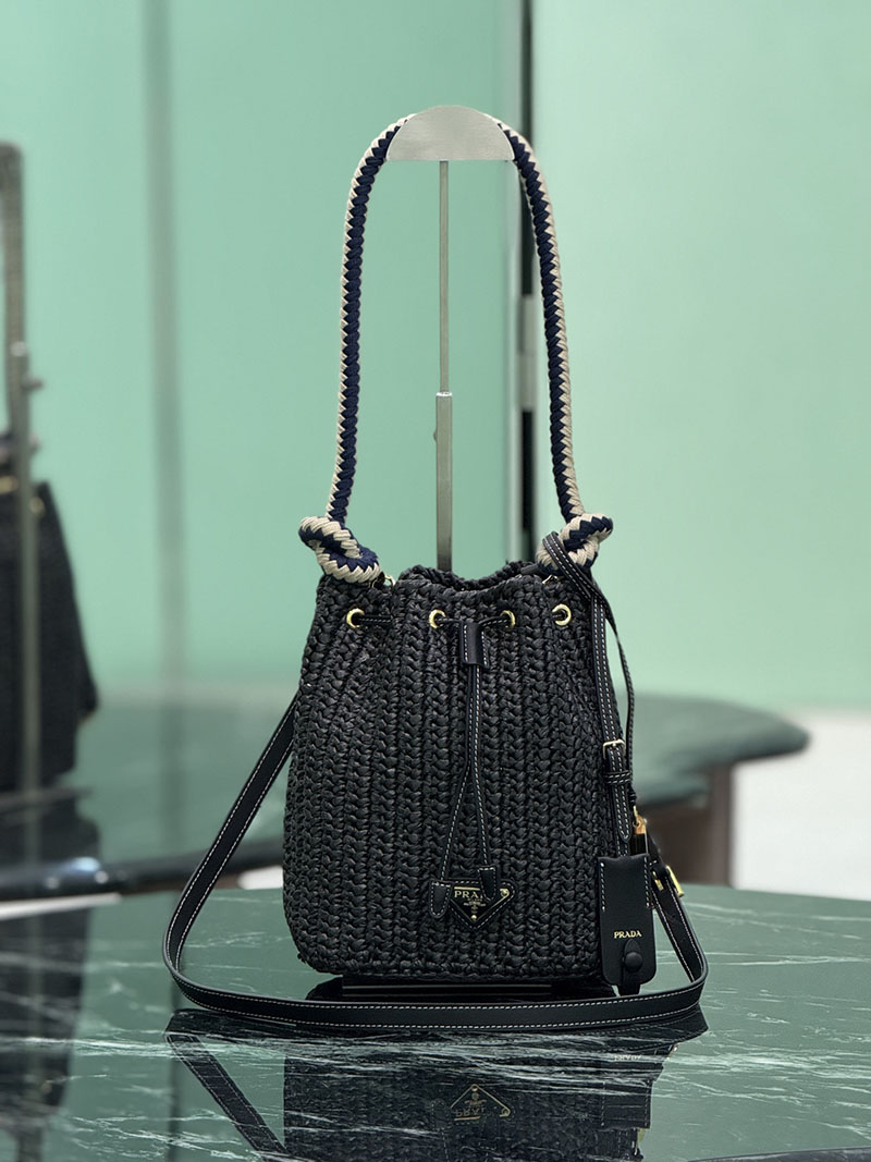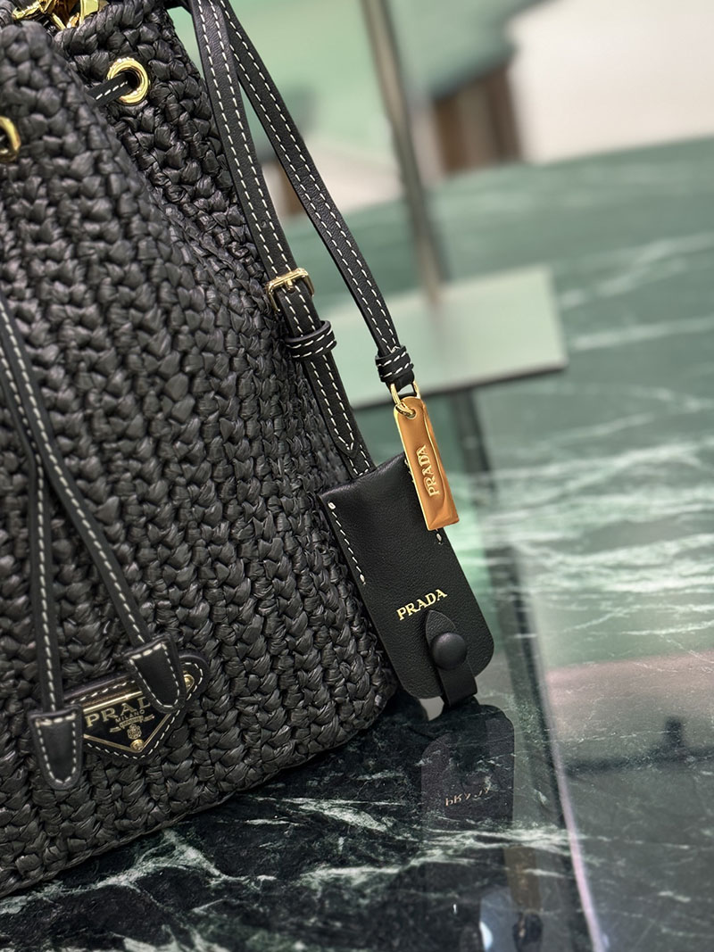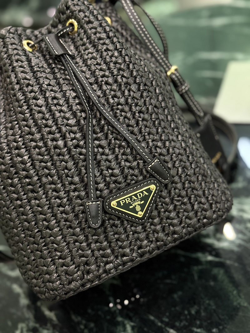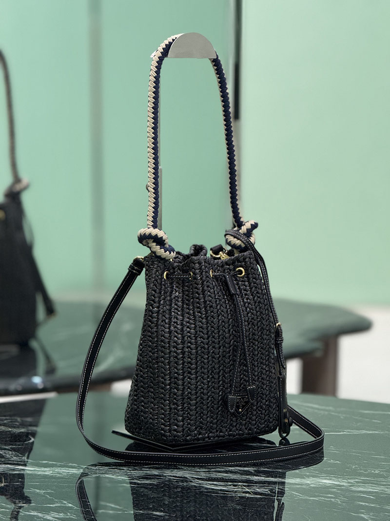 プラダ アウトレット PRADA クロシェ ミニ バケットバッグ 1BE068_2MHA_F0002_V_OVZ ブラック ビスコース プラダ バッグ アウトレット