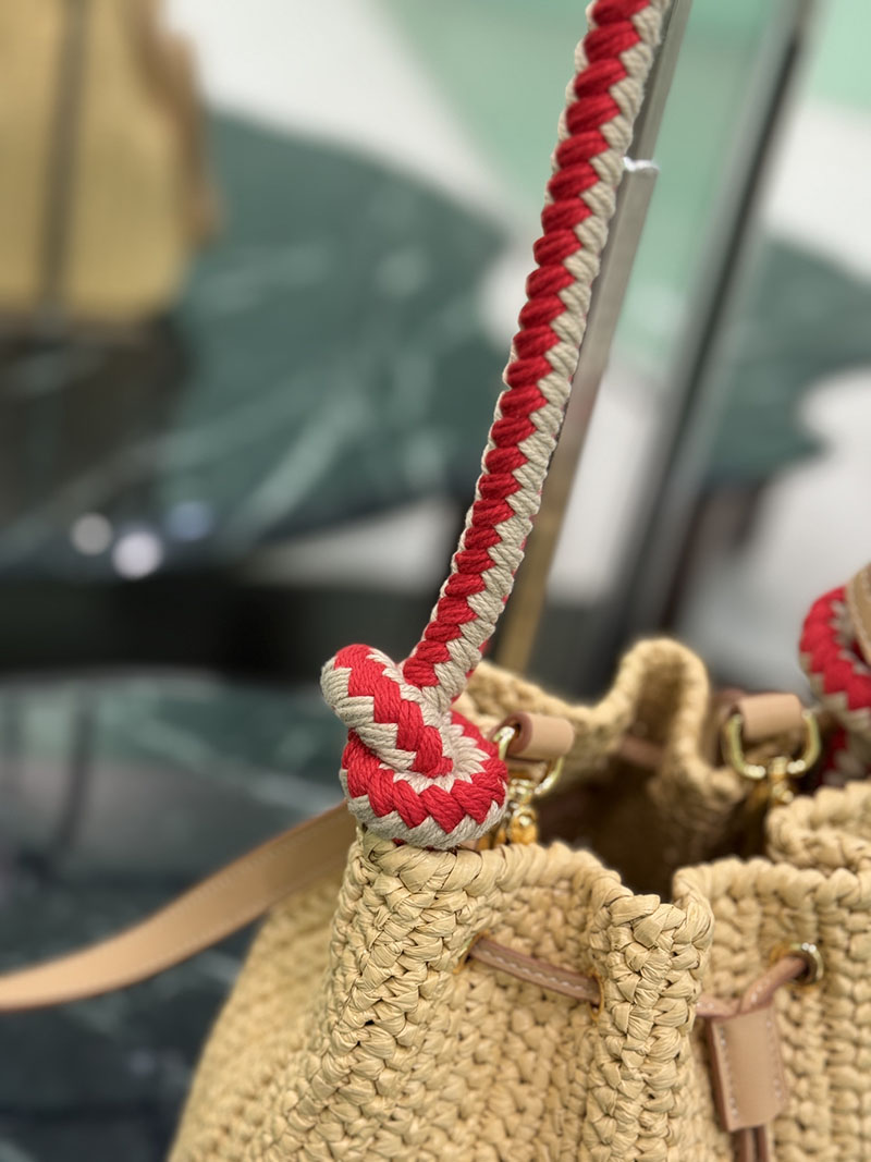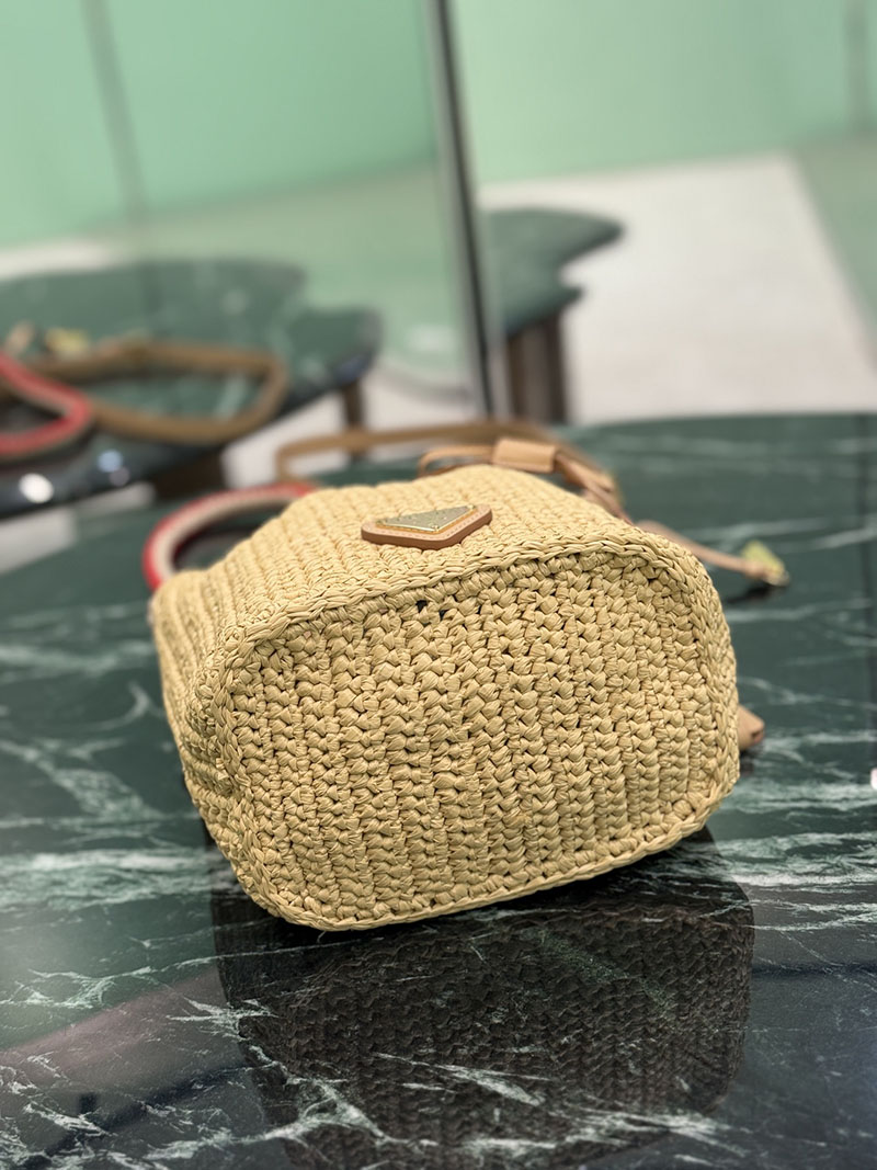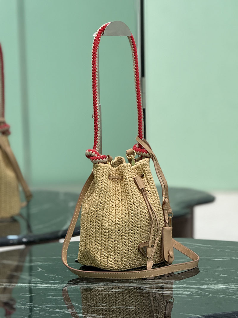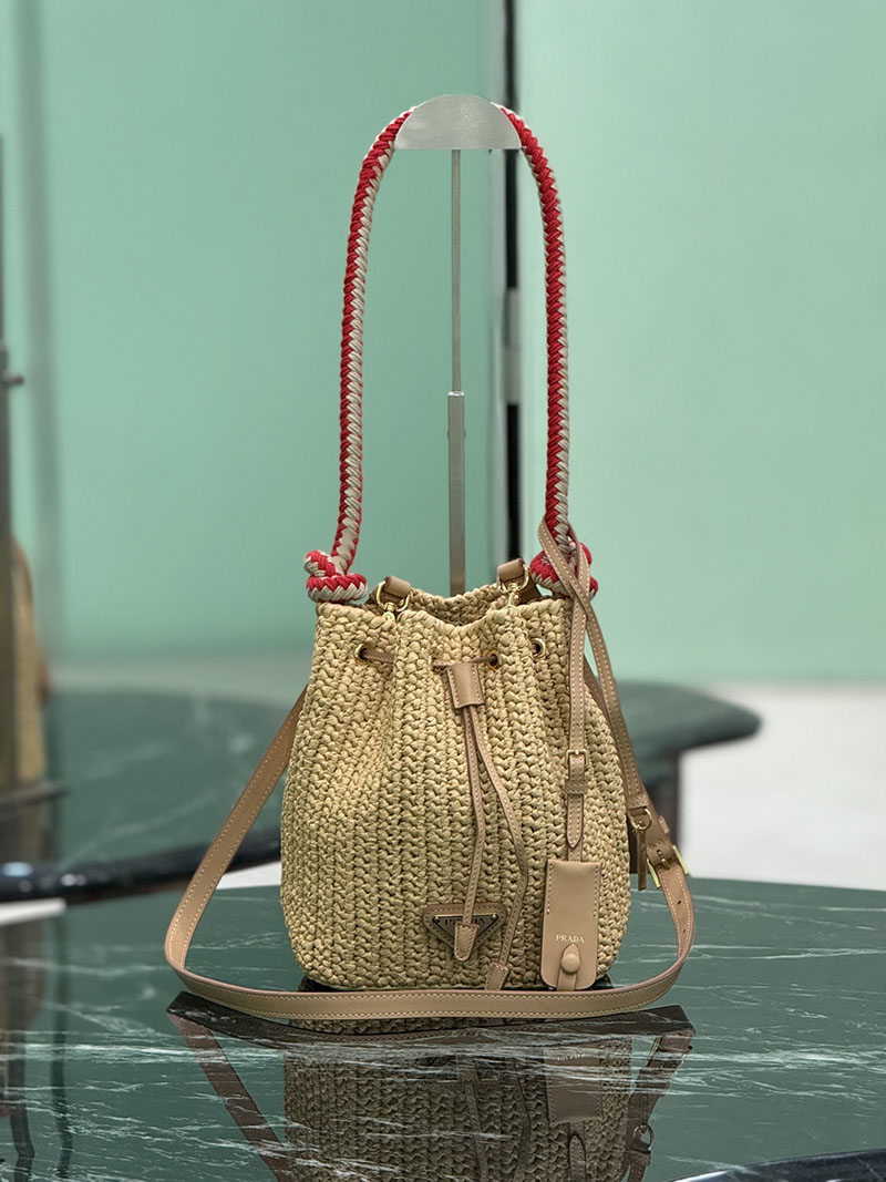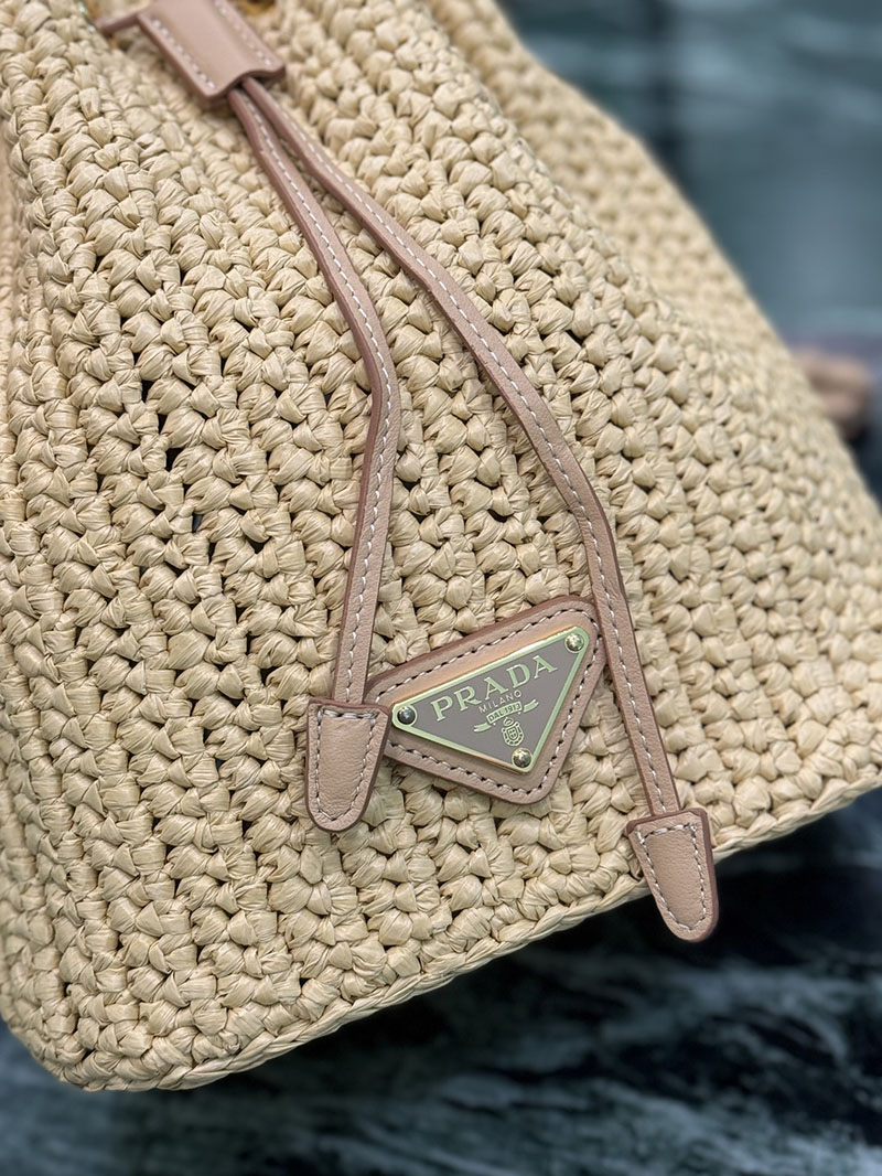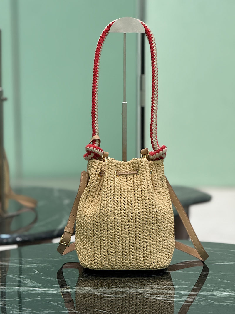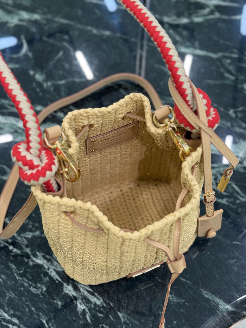 プラダ アウトレット PRADA クロシェ ミニ バケットバッグ 1BE068_2MHA_F0018_V_OVZ ナチュラル ビスコース プラダ バッグ アウトレット