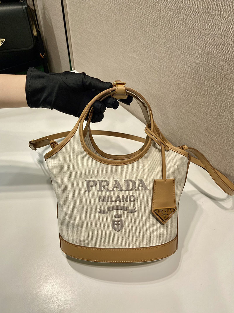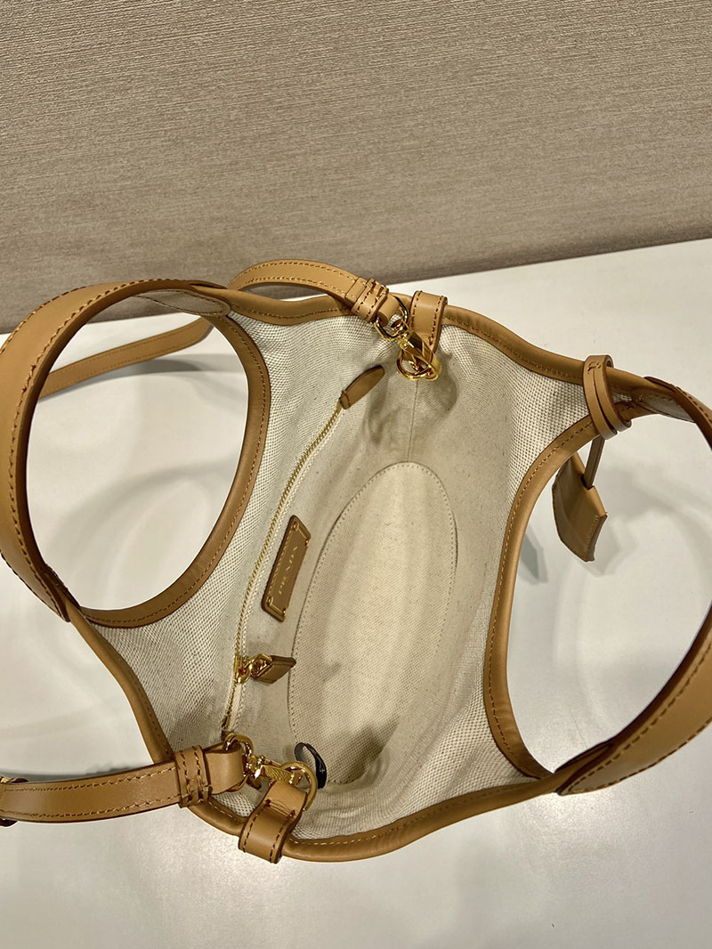 プラダ アウトレット PRADA リネン混コットンキャンバス×レザー 1BE074_2DLI_F0018_V_OAH ナチュラル H品 プラダ バッグ アウトレット店舗