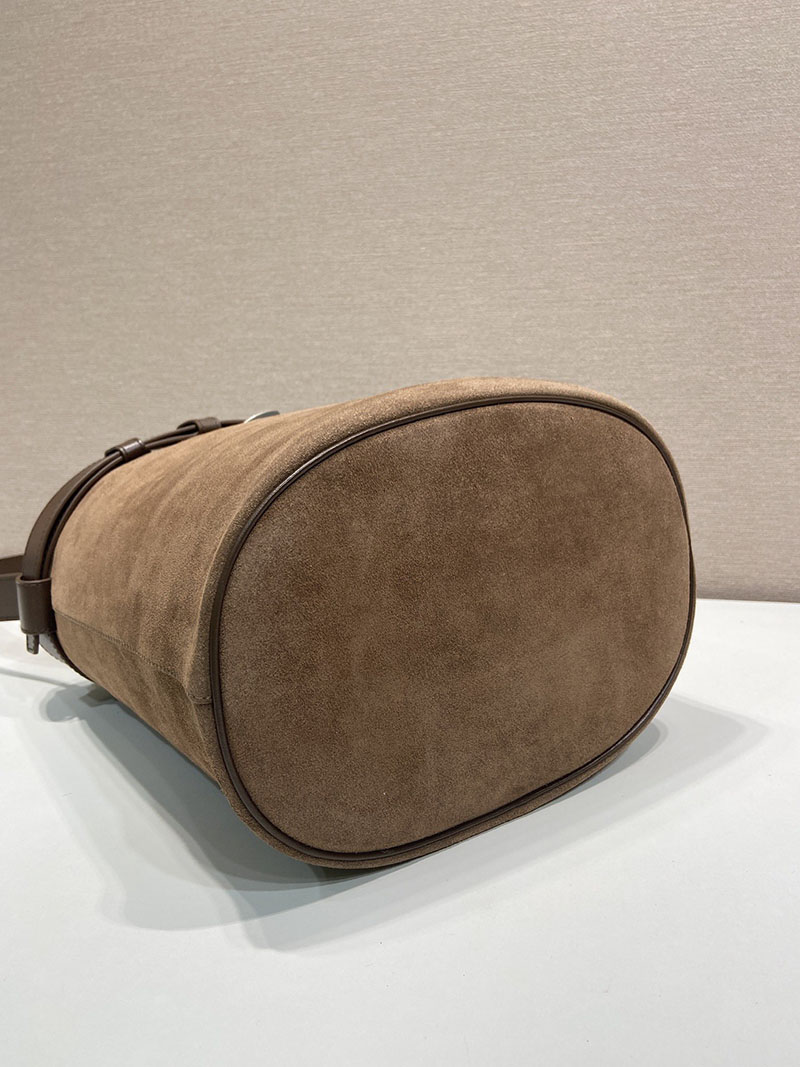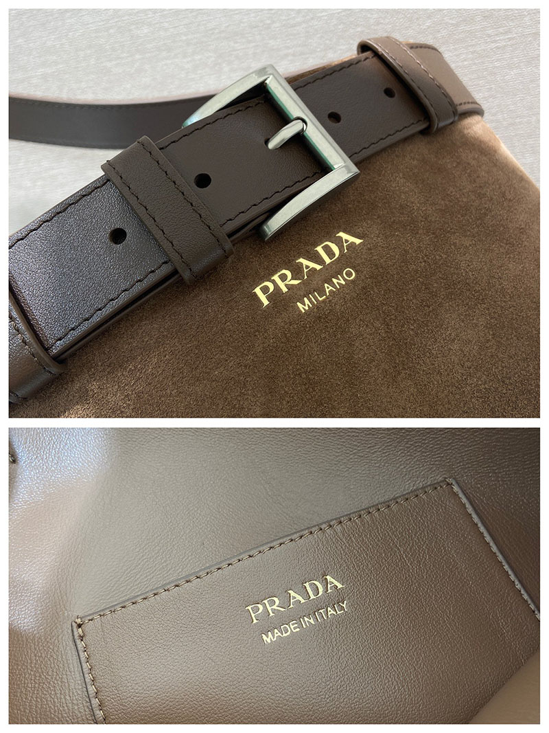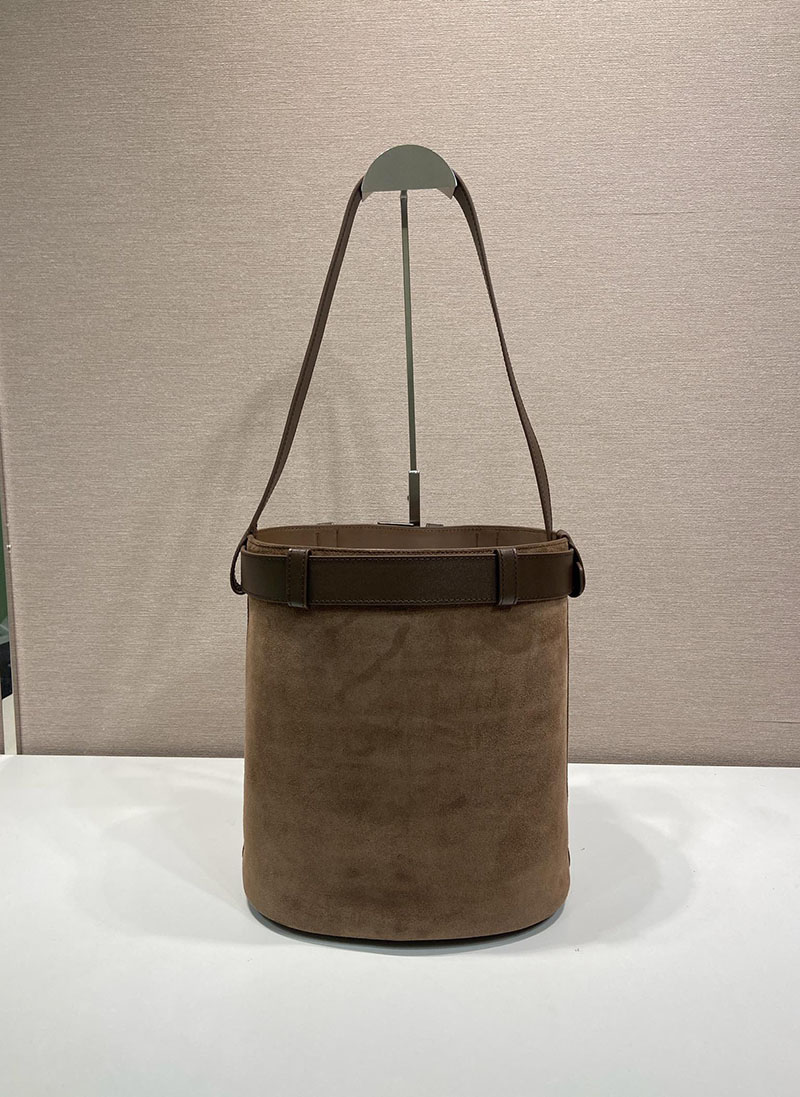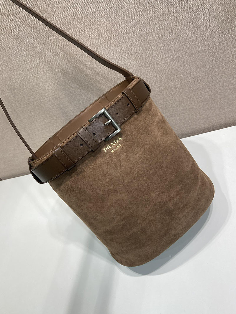 プラダ バッグ レディース PRADA バックル ベルト付き スエード バケットバッグ ブラウン 1BE085_2C4S_F0054 プラダ 巾着バッグ アウトレット