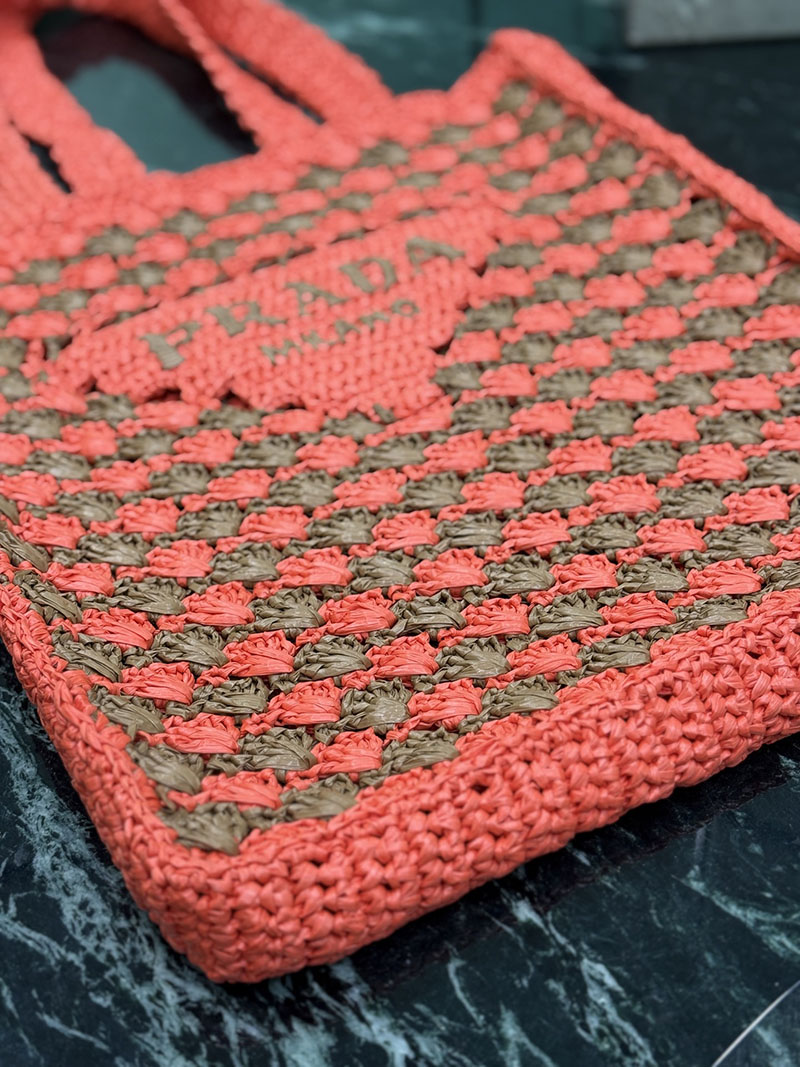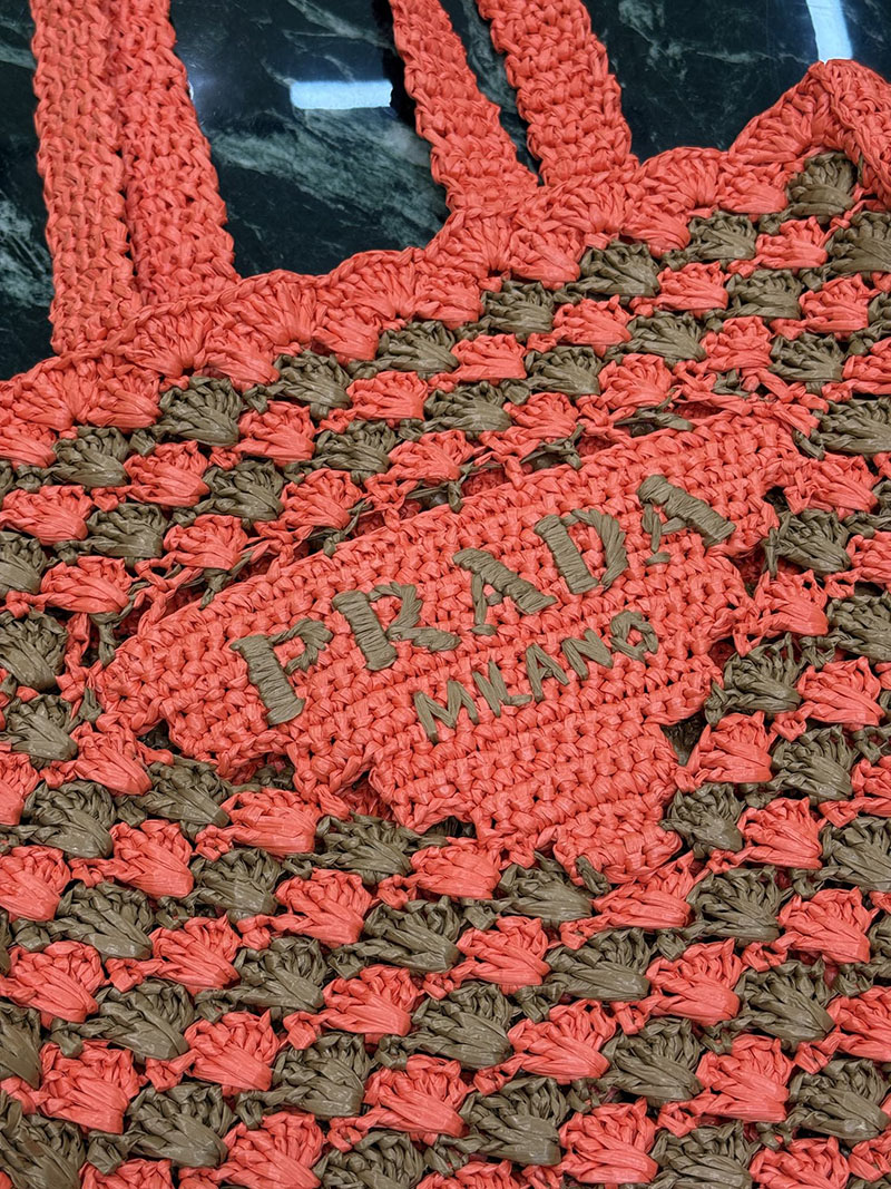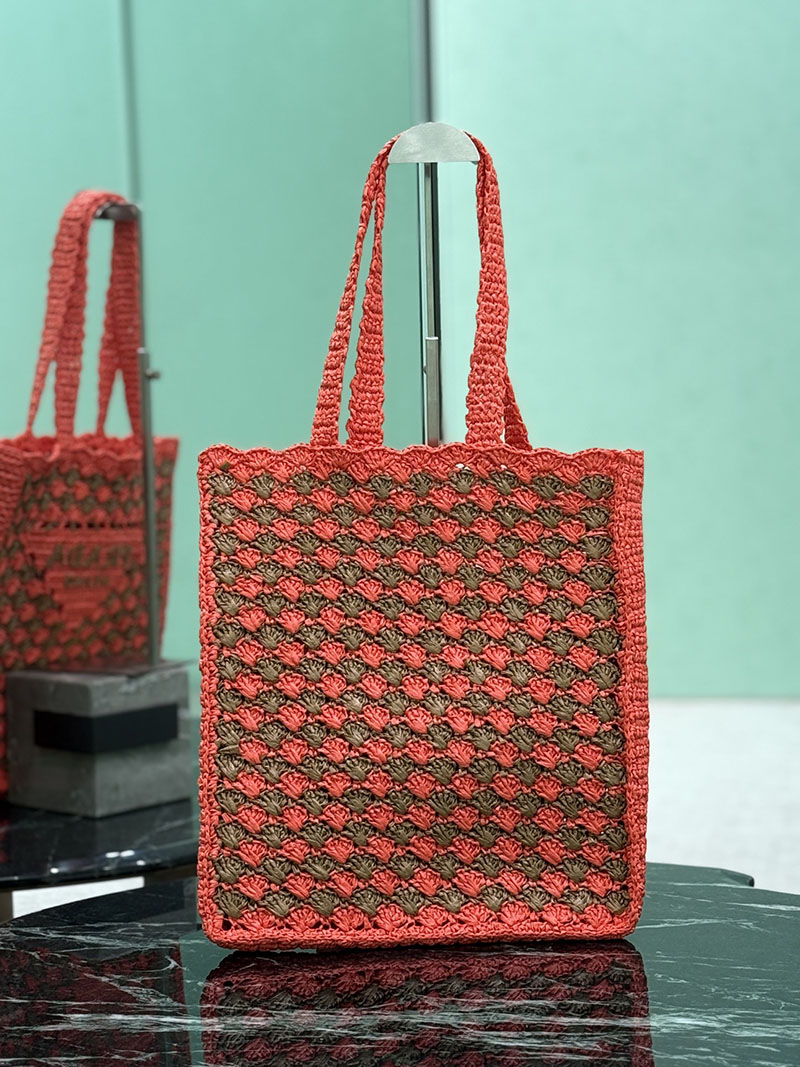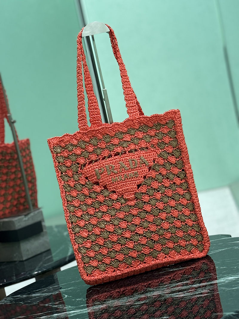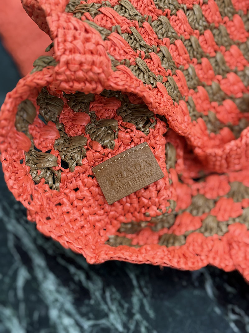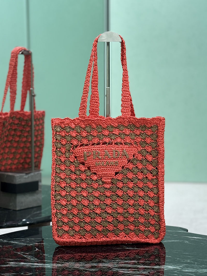 プラダ アウトレット PRADA トートバッグ RAFIA ラフィア 1BG393_2A2T_F068Z_V_OOO レッド H品 プラダ トートバッグ キャンバス