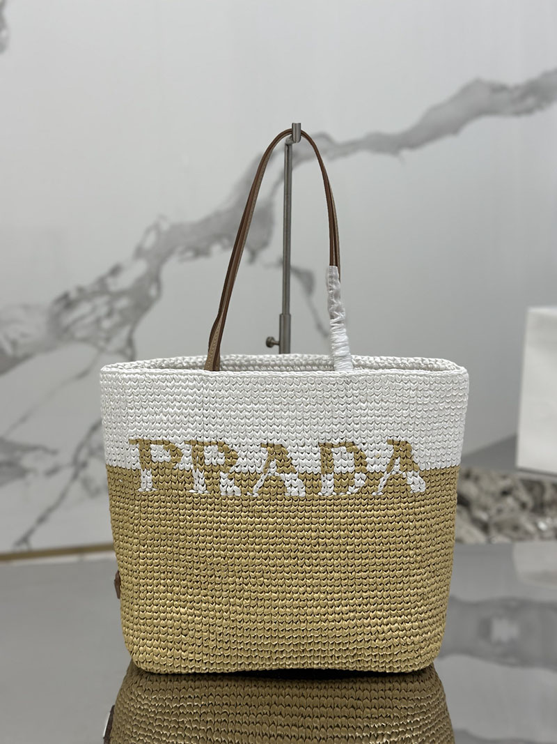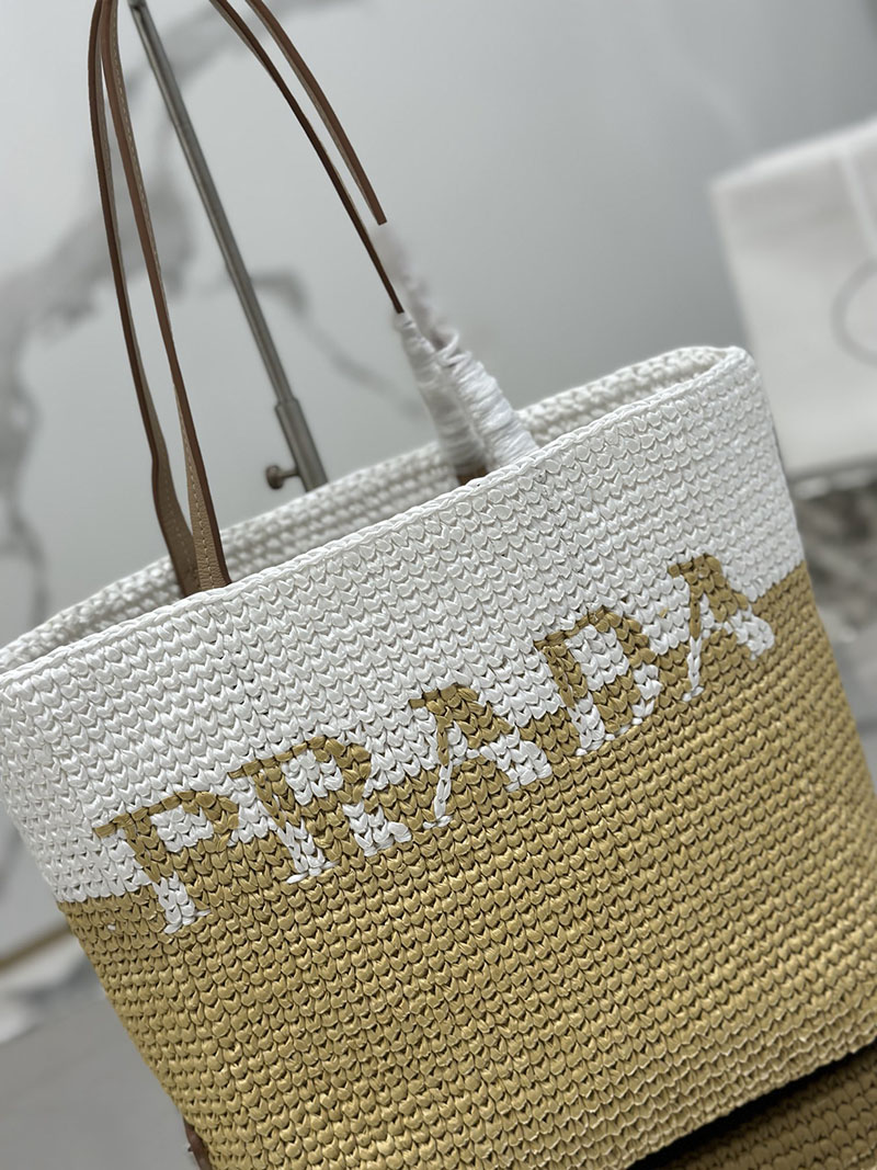 プラダ アウトレット PRADA ラフィア トート ショルダー 1BG454_2DJS_F0N86 ライトベージュ H品 プラダ トートバッグ キャンバス