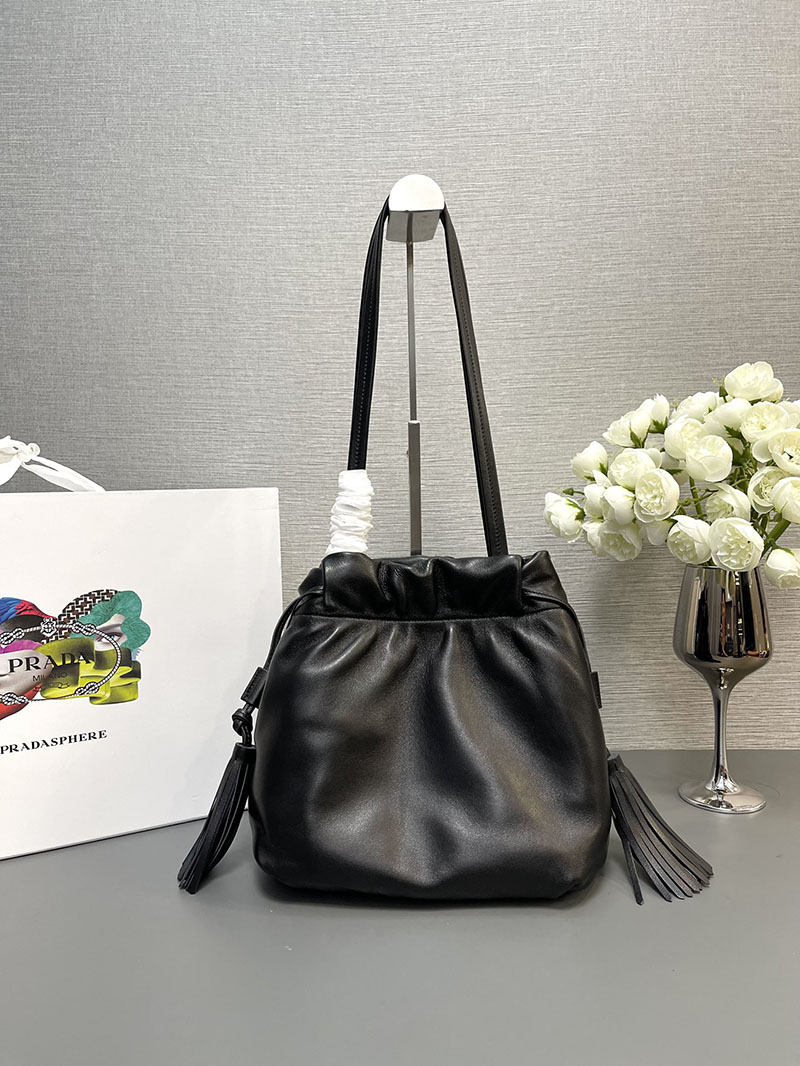 プラダ アウトレット PRADA フリンジ付き ナッパレザー ショルダーバッグ 1BG541_2DX8_F0002_V_OOO ブラック H品 レディース プラダ ショルダーバッグ