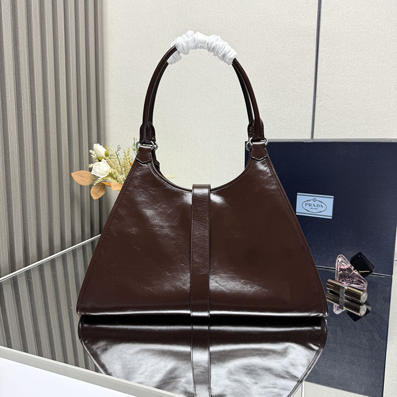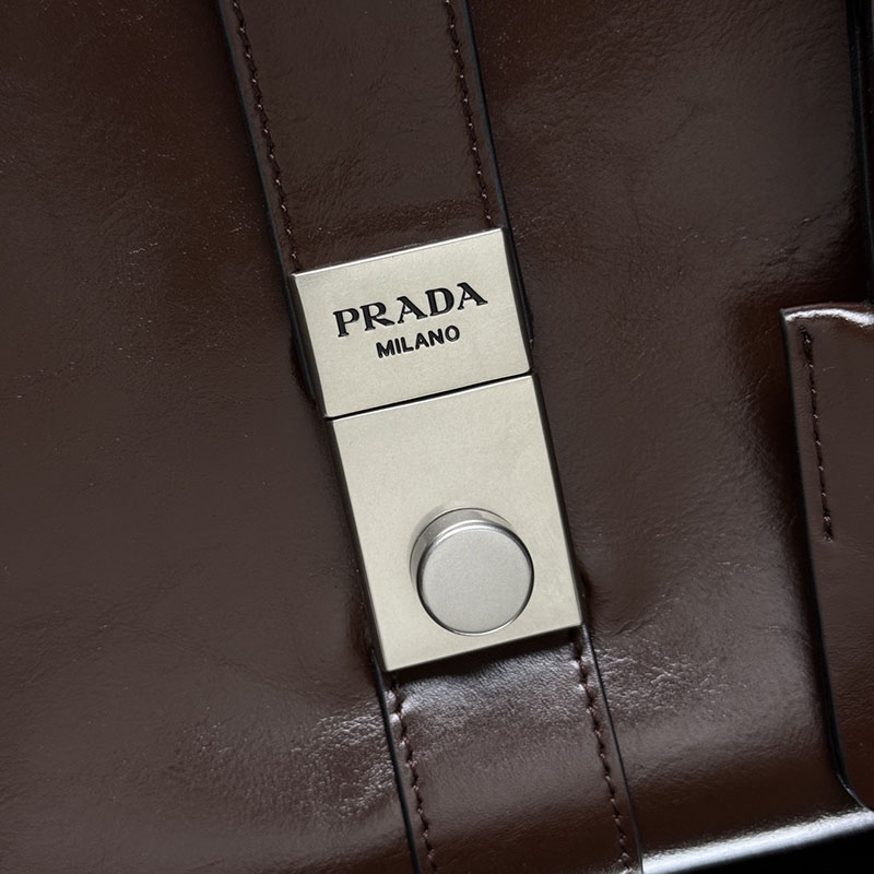 プラダ アウトレット PRADA ラージ レザー トートバッグ 1BG570_2CYR_F01D6_V_OOO ダークブラウン H品 レディース プラダ ショルダーバッグ