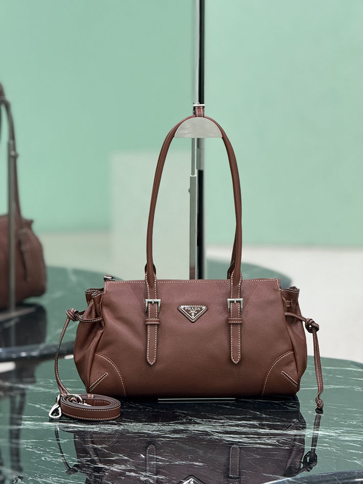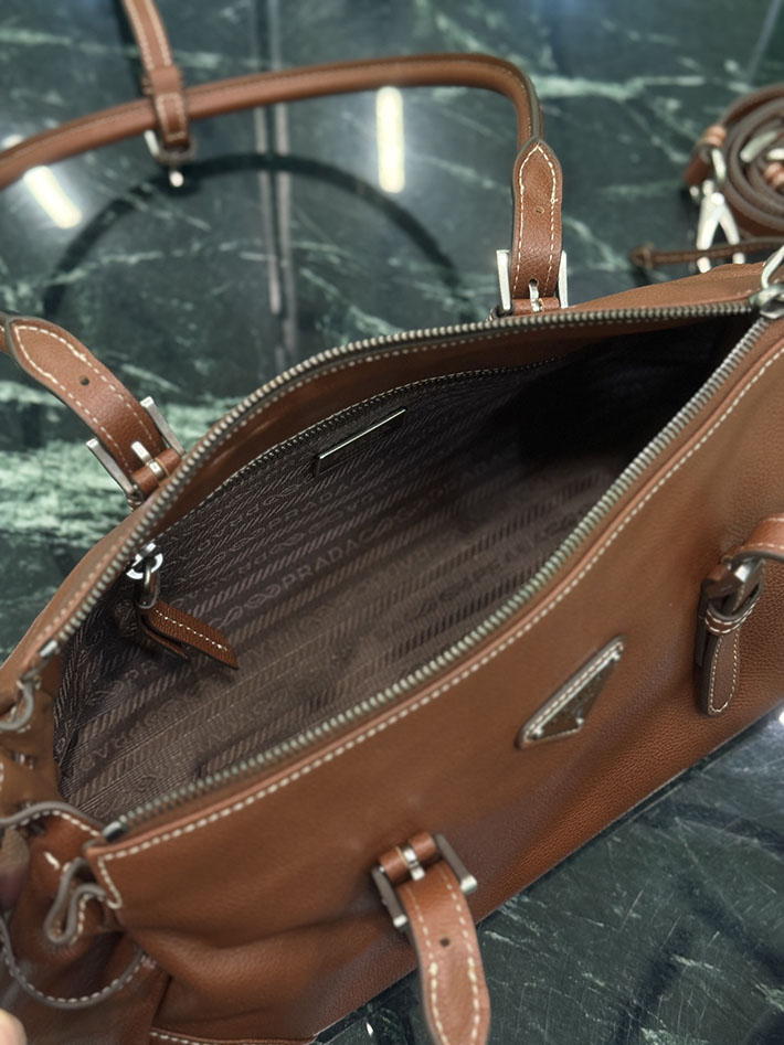 プラダ PRADA ボニー アンティーク加工レザー ミディアム トートバッグ チェストナットブラウン 1BG628_2HF2_F0042 プラダ レザー トートバッグ