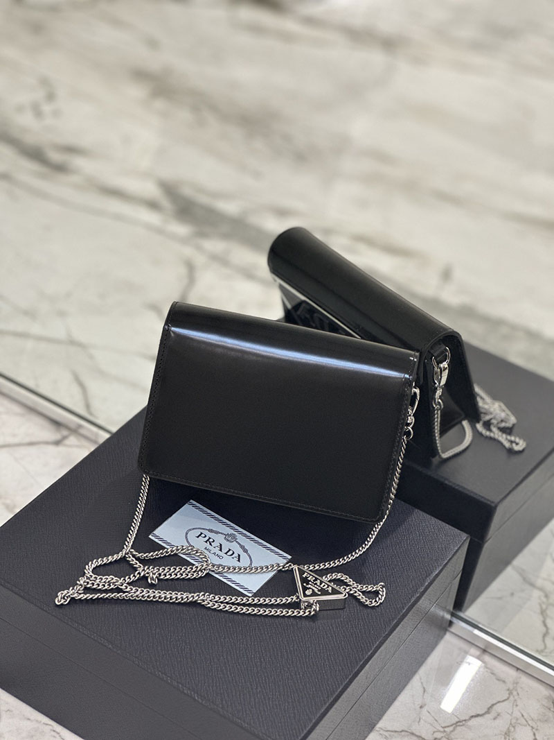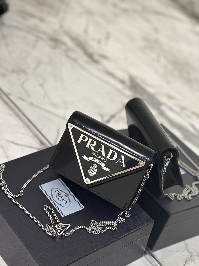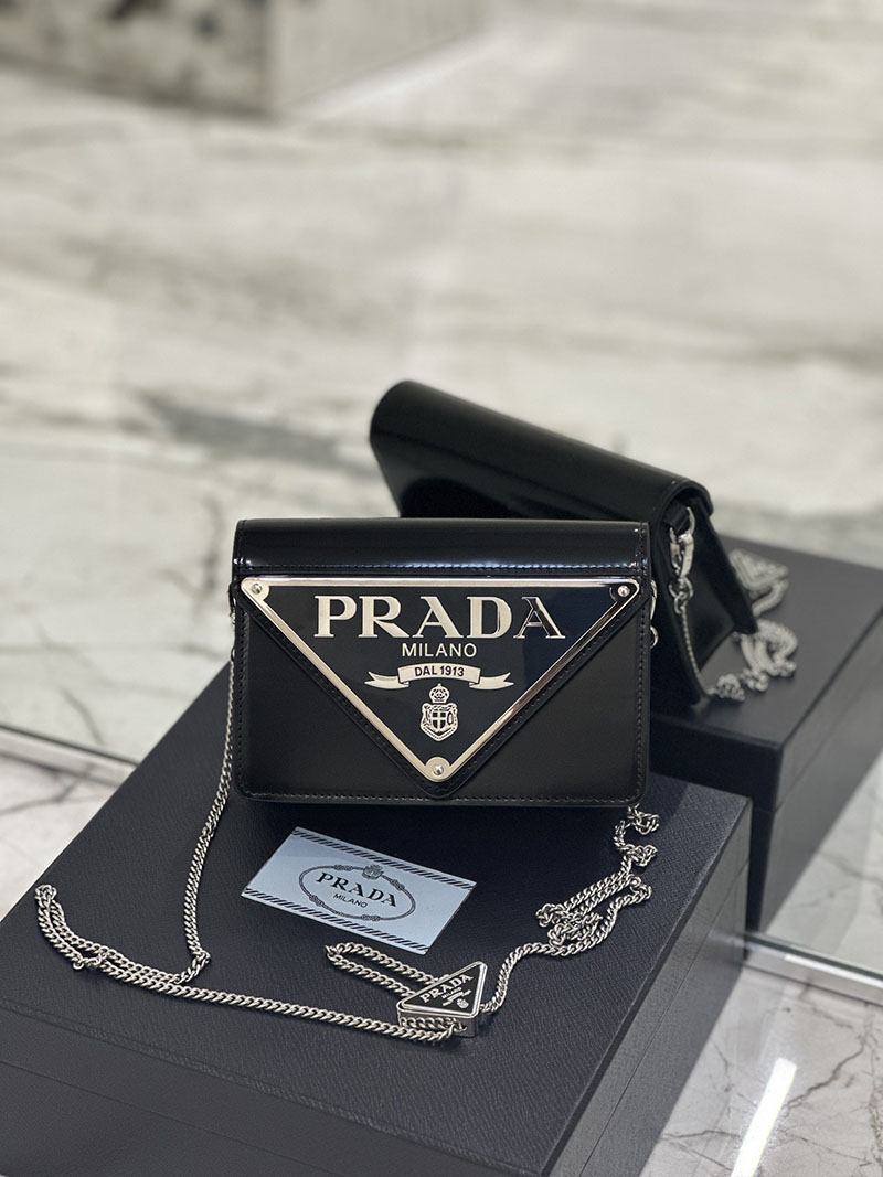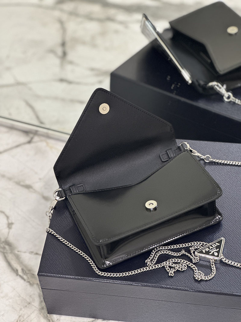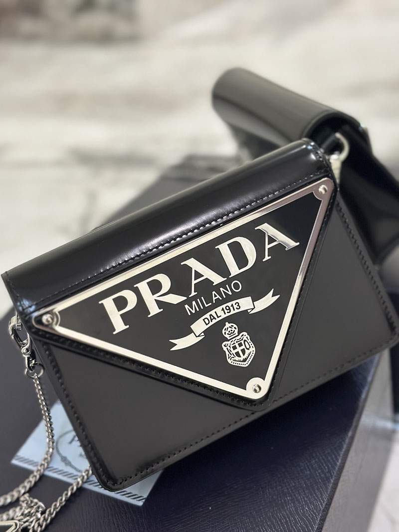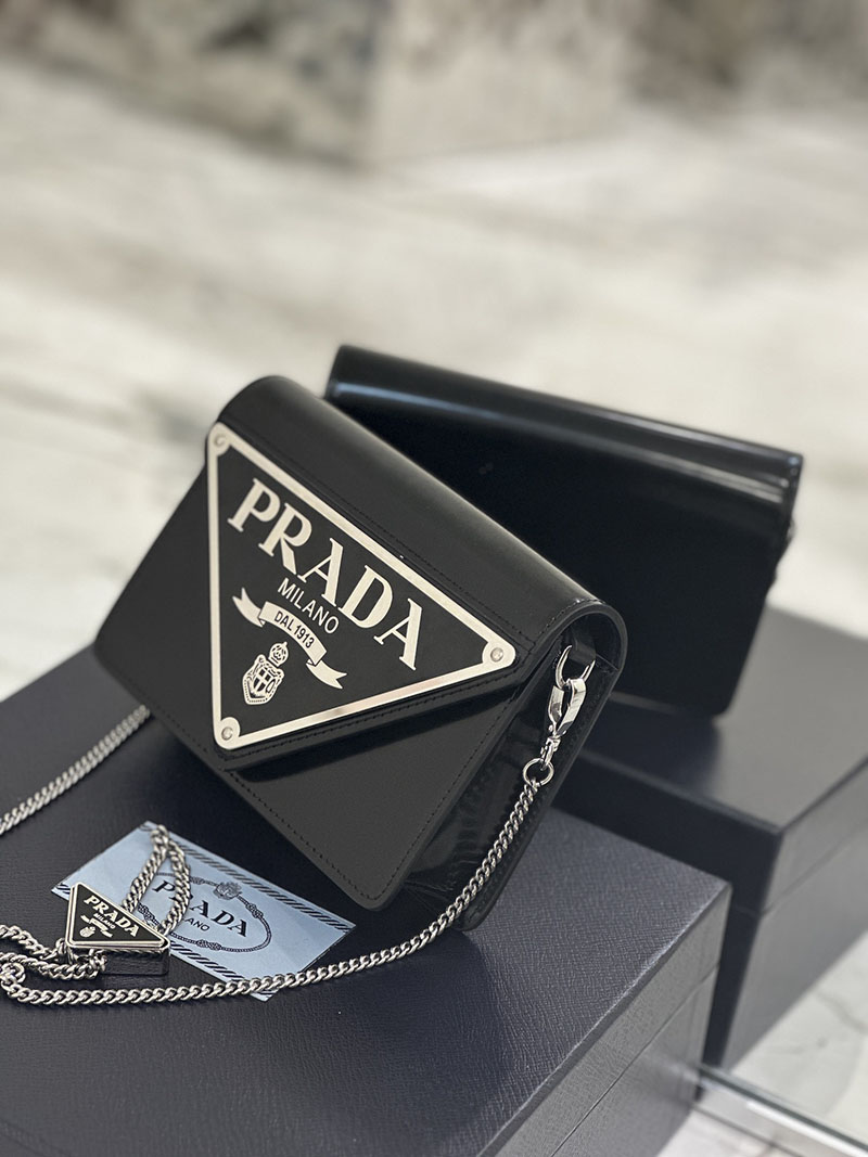 プラダ アウトレット PRADA ロゴ入り ミニレザー クロスボディバッグ 1BH189_ZO6_F0002 ブラック H品 プラダ ショルダーバッグ 革