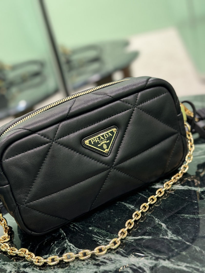 プラダ アウトレット PRADA キルティングレザーカメラバッグ 1BH197 ブラック H品 プラダ ショルダーバッグ ミニ