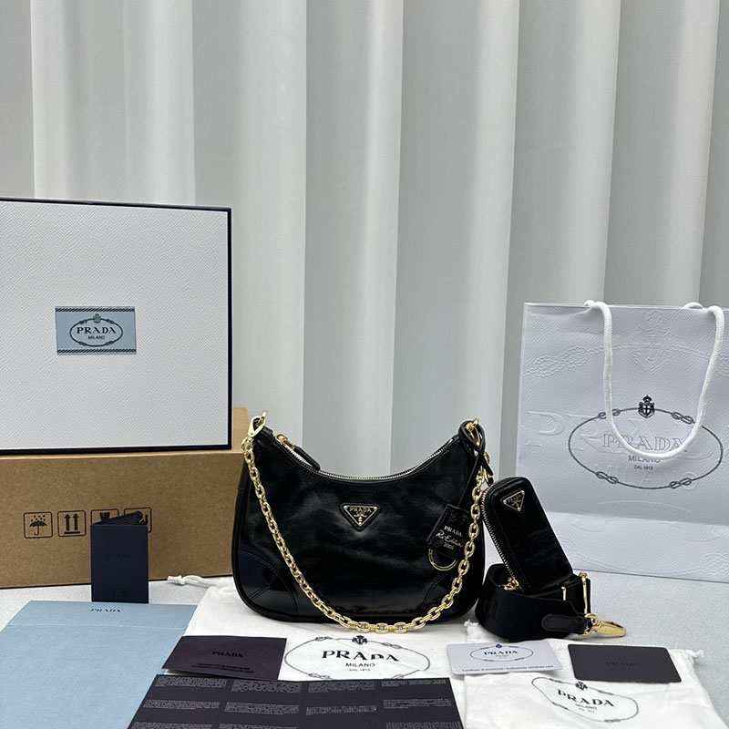 プラダ アウトレット PRADA Re-Edition 2005 ナプラックパテントレザー バッグ 1BH204_2DNT_F0002_V_WRS ブラック H品 プラダ アウトレット バッグ 新作
