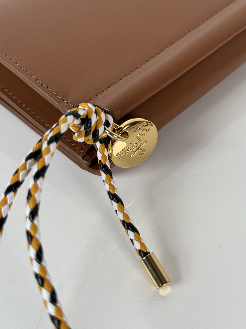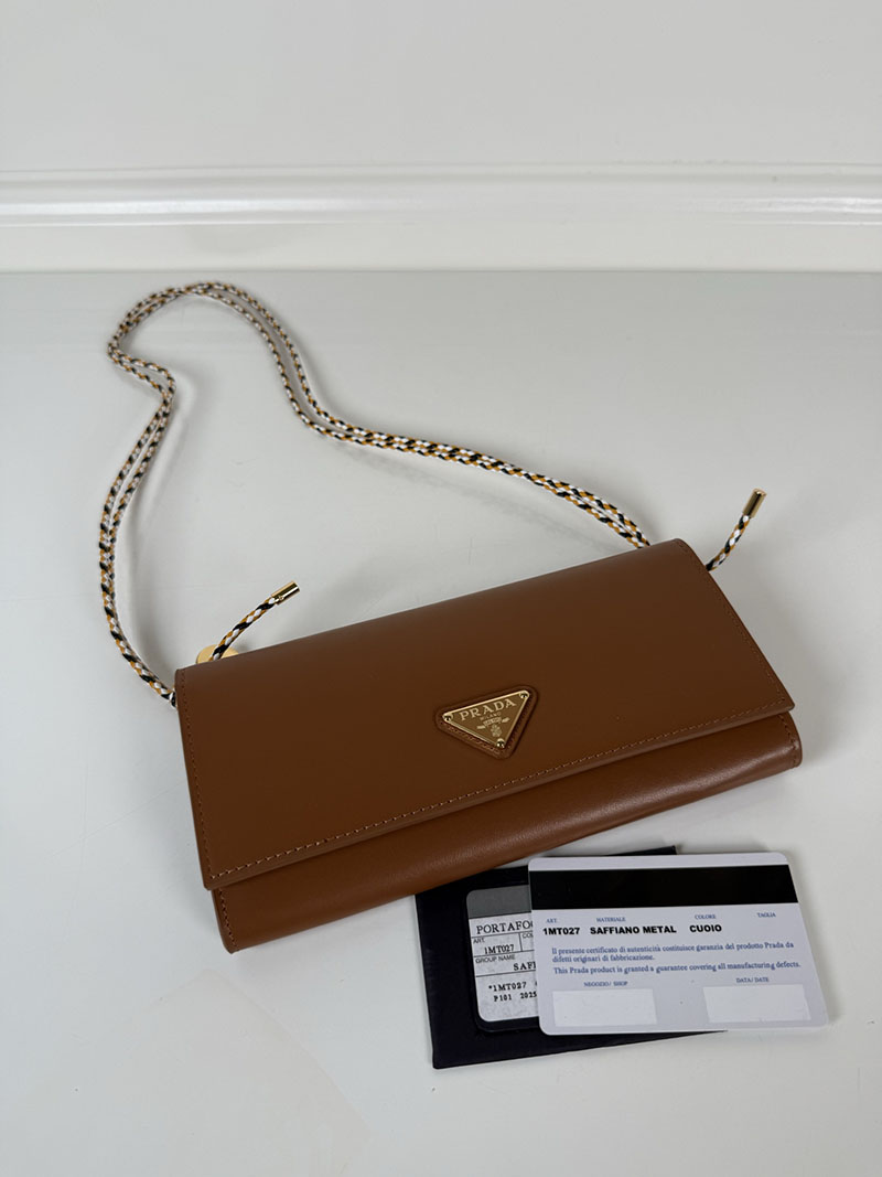 プラダ バッグ レディース PRADA レザーショルダーストラップ付 財布 ブラウン 1MT027_2C8V_F0046 プラダの財布を持つ女