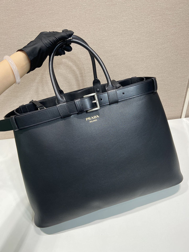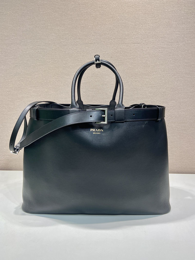 プラダ アウトレット PRADA ソフトグレインレザー ハンドバッグ 2521980 ブラック H品 プラダ ハンドバッグ 黒