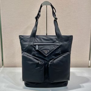 プラダ アウトレット PRADA Re-Nylon xサフィアーノレザートートバッグ 2VG112_2DMH_F0002 ブラック H品 プラダ トートバッグ メンズ ビジネス