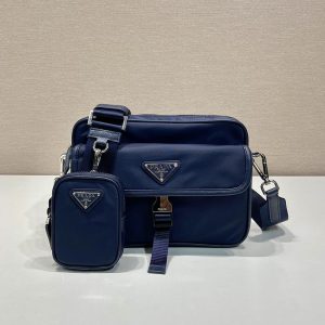プラダ アウトレット PRADA Re-Nylon xサフィアーノレザー ショルダーバッグ 2VD034_2DMH_F0216_V_XOP ネイビー H品 プラダ バッグ メンズ ナイロン 通勤