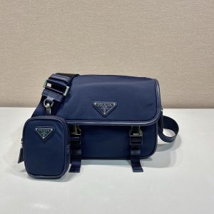 プラダ アウトレット PRADA Re-Nylon xサフィアーノレザー ショルダーバッグ 2VH133_2DMH_F0216_V_XMP ネイビー H品 プラダ ショルダーバッグ ナイロン メンズ 仕事用