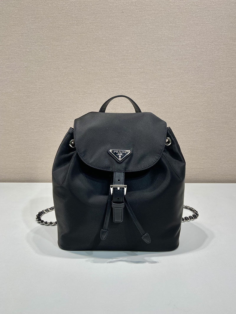 プラダ アウトレット PRADA 三角ロゴ ナイロン テスート チェーン リュック バッグ 1BZ831 ブラック H品 プラダ バックパック ナイロン