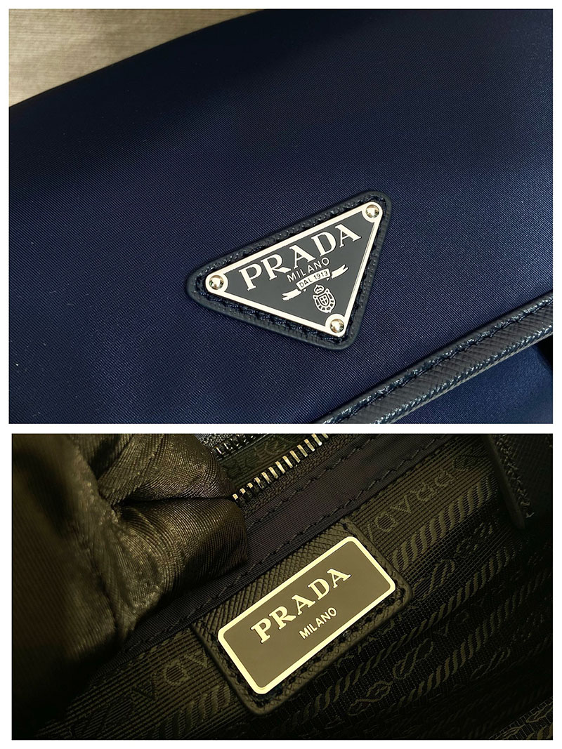 プラダ アウトレット PRADA Re-Nylon xサフィアーノレザー ショルダーバッグ 2VD034_2DMH_F0216_V_XOP ネイビー H品 プラダ バッグ メンズ ナイロン 通勤