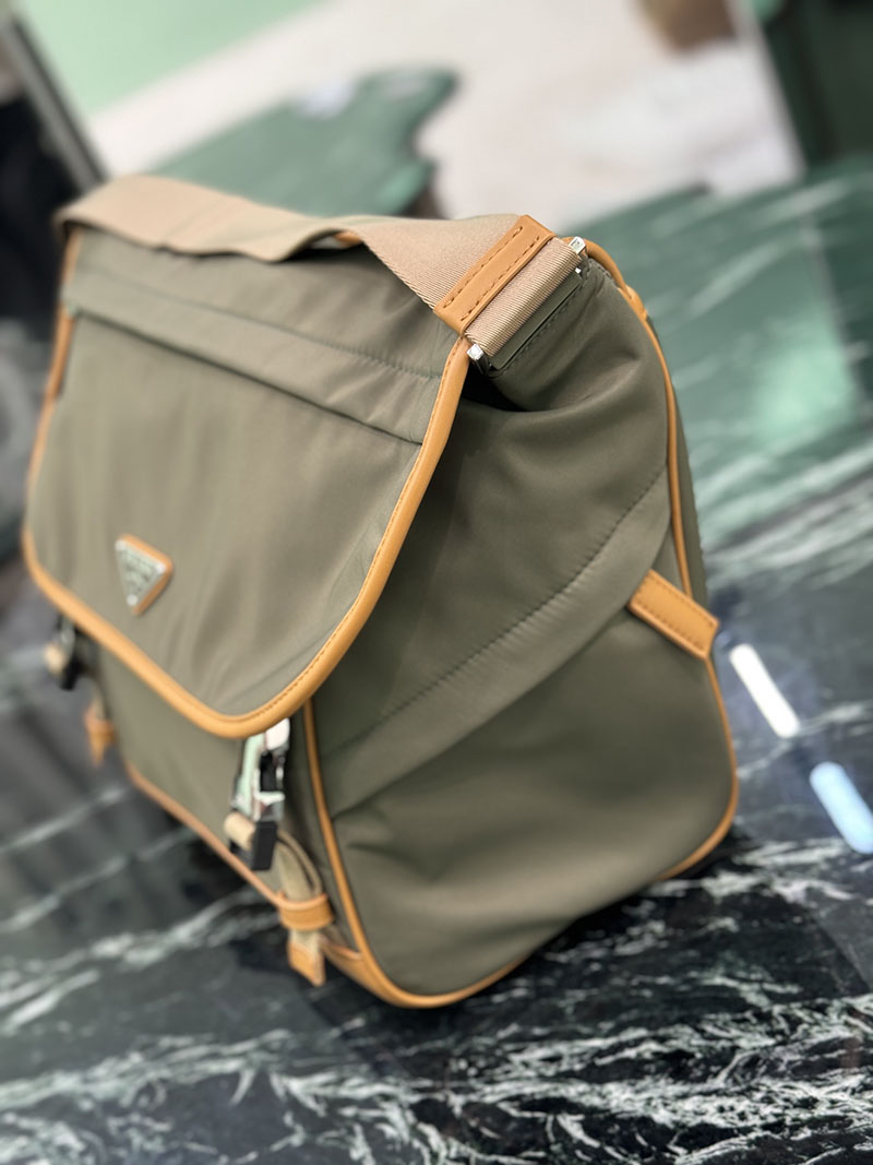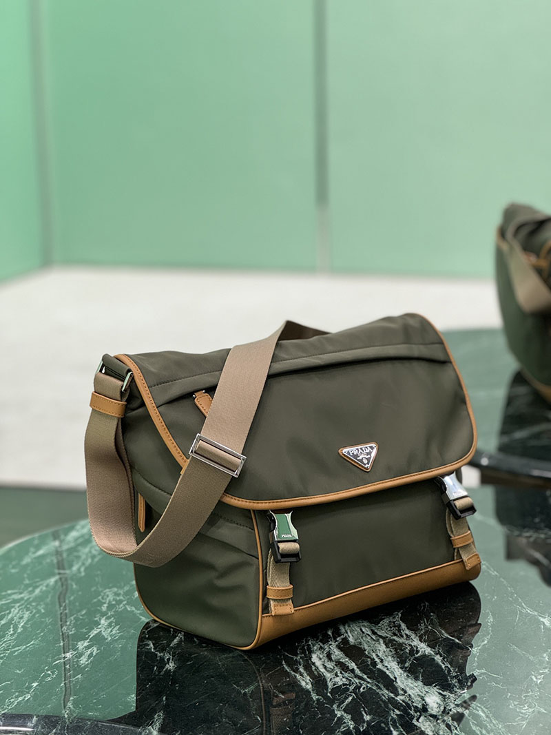 プラダ アウトレット PRADA ラージRe-Nylonレザーショルダーバッグ 2VD052_384_F041O_V_OBF カーキグリーン H品 プラダ ナイロンバッグ 人気