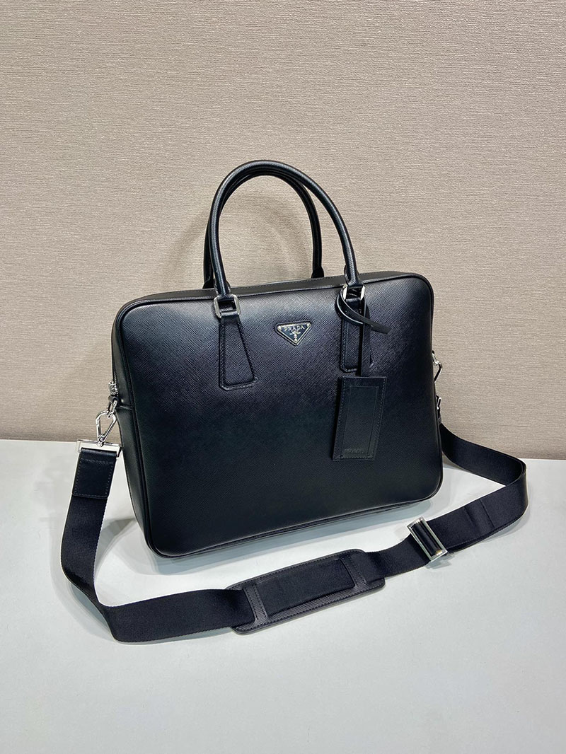 プラダ アウトレット PRADA サフィアーノレザー ブリーフケース 2VE368_9Z2_F0002_V_OOX ブラック H品 プラダ ビジネスバッグ メンズ