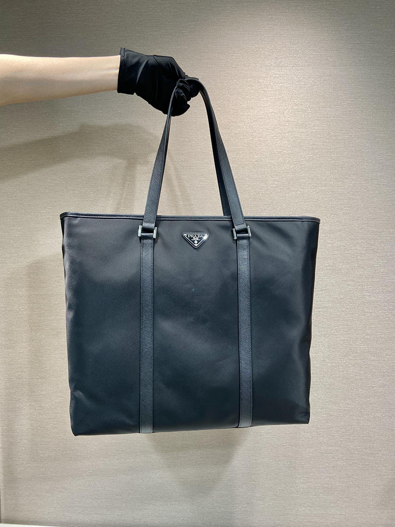 プラダ アウトレット PRADA Re-Nylon xサフィアーノレザートートバッグ 2VG112_2DMH_F0002 ブラック H品 プラダ トートバッグ メンズ ビジネス