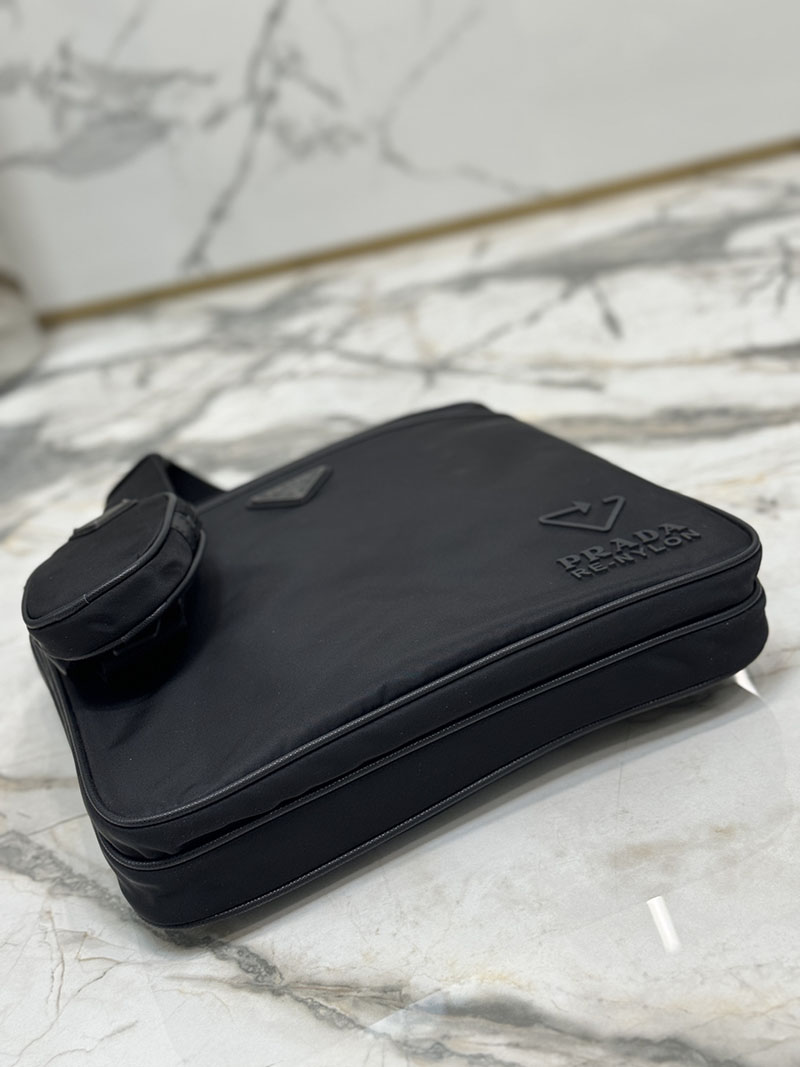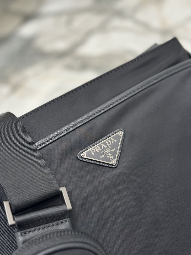 プラダ アウトレット PRADA Re-Nylon xサフィアーノレザー ショルダーバッグ 2VH118_2DMH_F0002_V_XOO ブラック H品 プラダ ショルダーバッグ メンズ