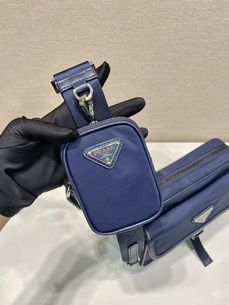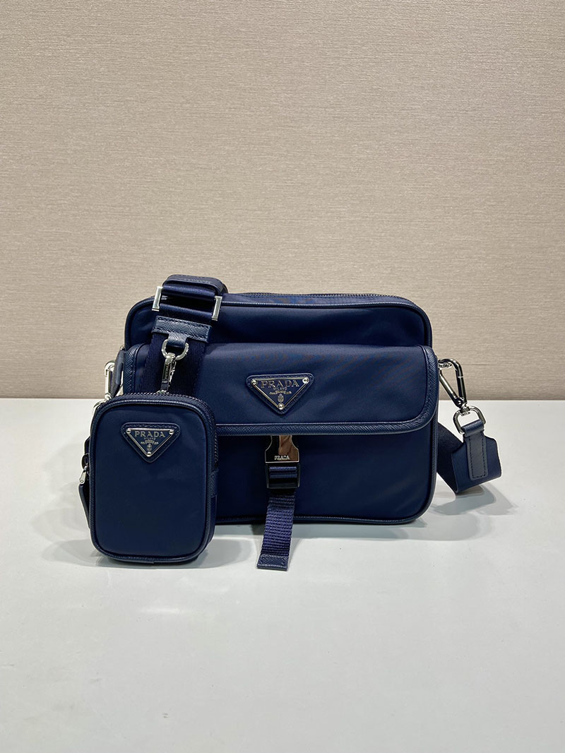 プラダ アウトレット PRADA Re-Nylon xサフィアーノレザー ショルダーバッグ 2VH133_2DMH_F0216_V_XMP ネイビー H品 プラダ ショルダーバッグ ナイロン メンズ 仕事用