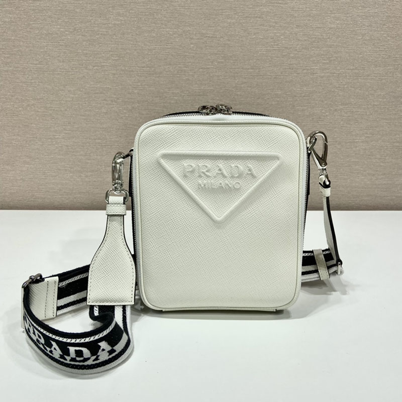 プラダ アウトレット PRADA ロゴ刻印レザーショルダーバック 2VH154_2DDJ_F0009 ホワイト H品 プラダ メンズバッグ 人気