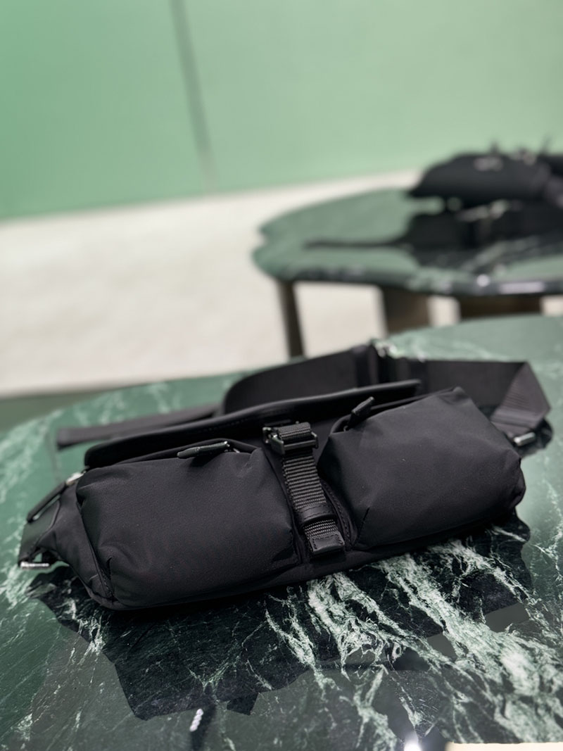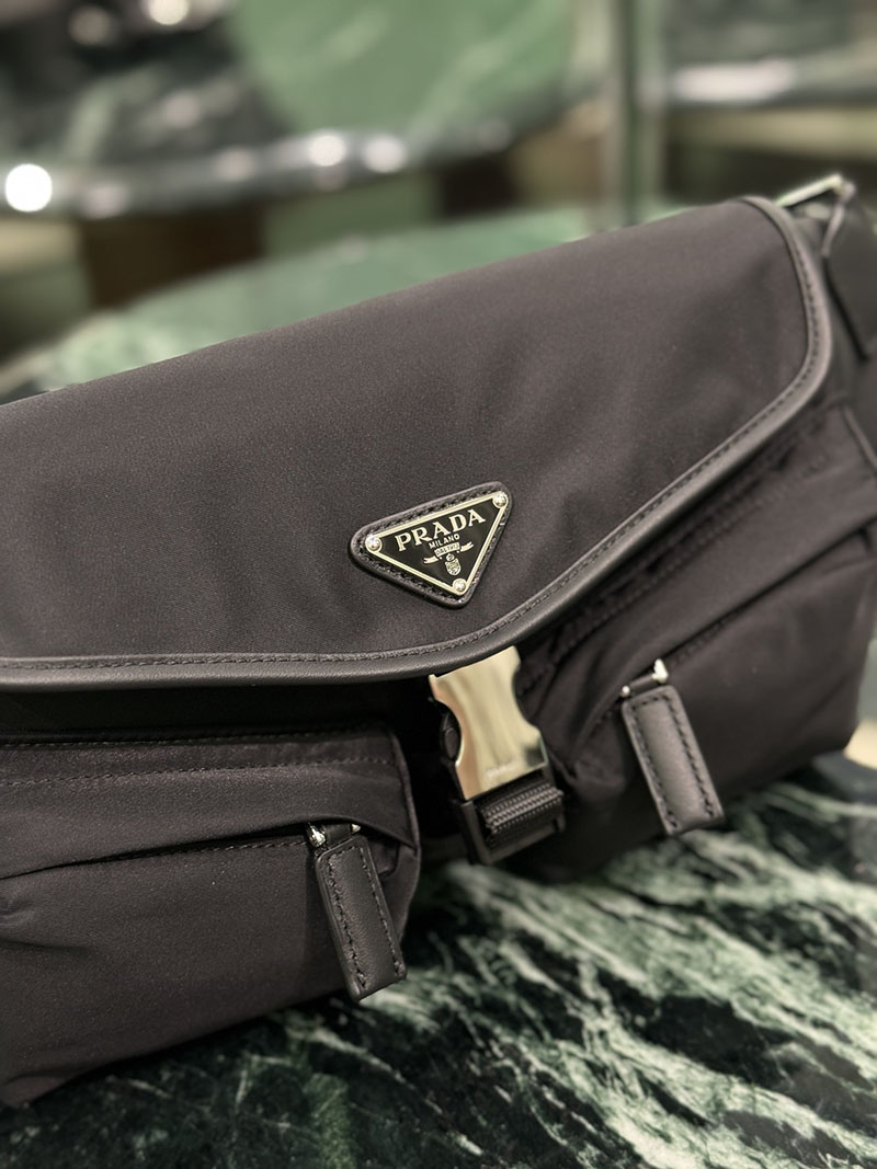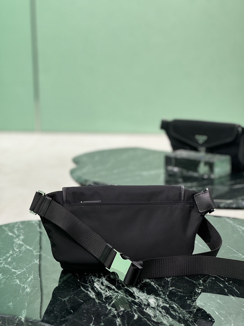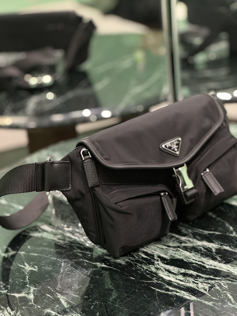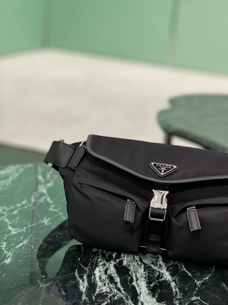 プラダ アウトレット PRADA Re-Nylon xレザー ショルダーバッグ 2VH174_2DW3_F0002_V_OOO ブラック H品 プラダ ウエストバッグ メンズ