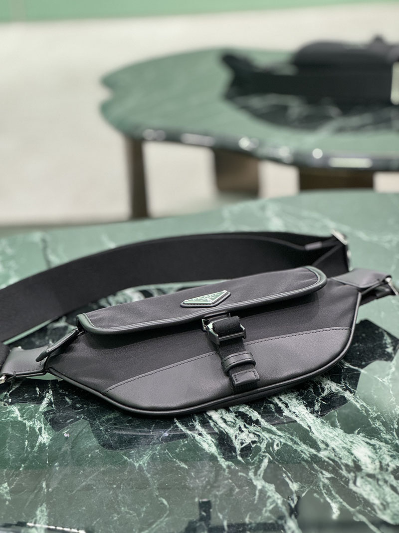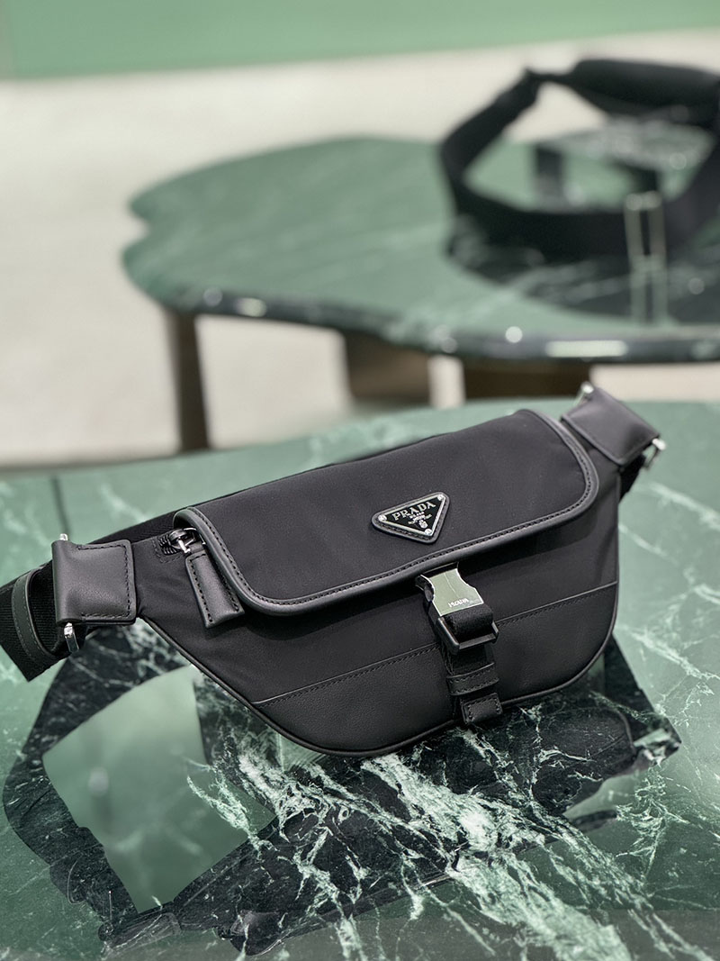 プラダ アウトレット PRADA Re-Nylon xサフィアーノレザー ショルダーバッグ 2VH176_2DMH_F0002_V_OOO ブラック H品 プラダ ウエストバッグ メンズ