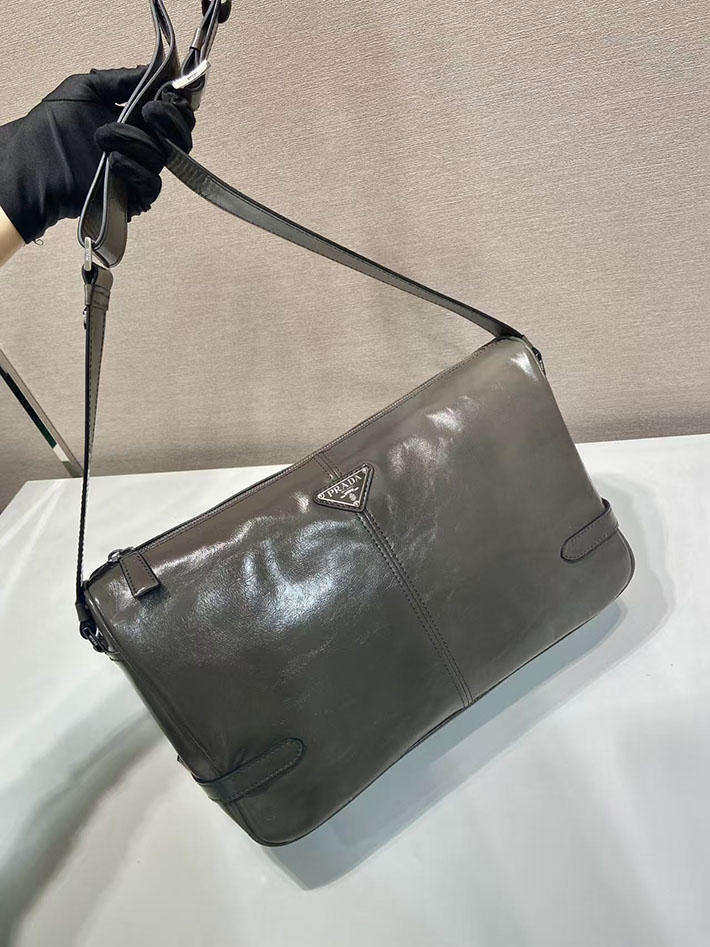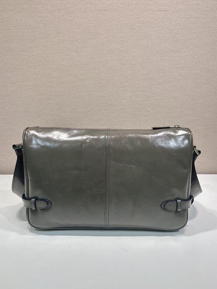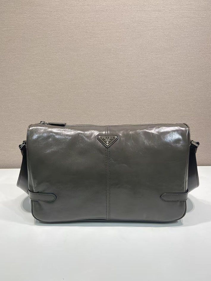 プラダ バッグ メンズ 新作 PRADA ソフトルックスレザーショルダーバッグ グレー 2VH187_2CYR_F0JDS プラダ ショルダーバッグ メンズ
