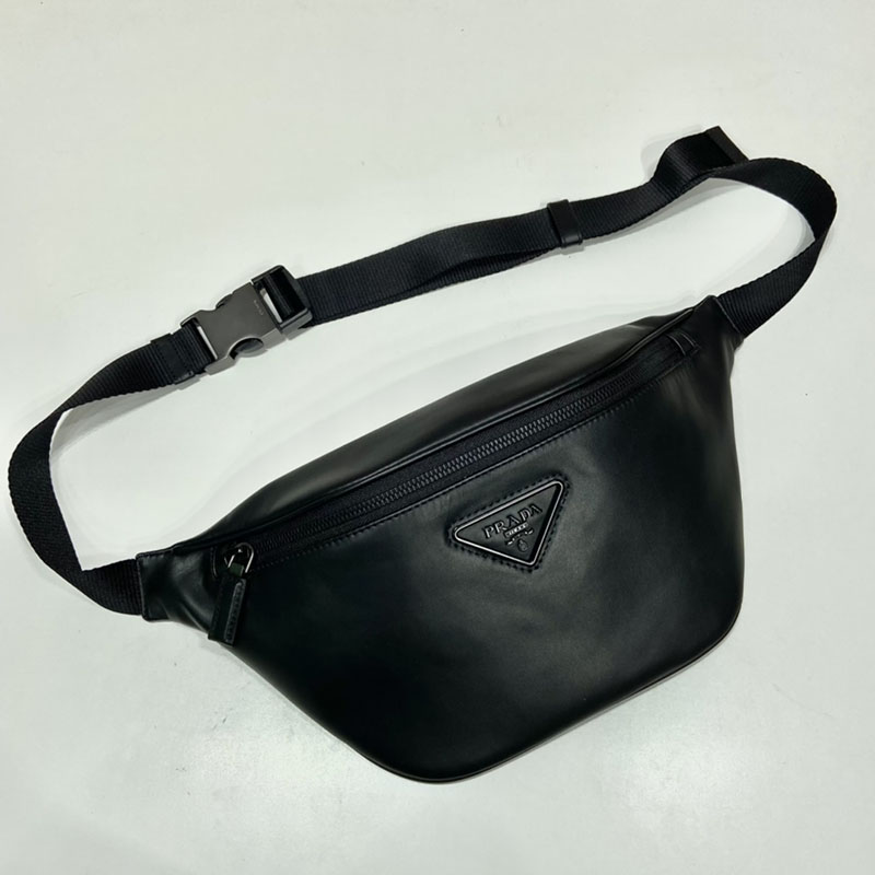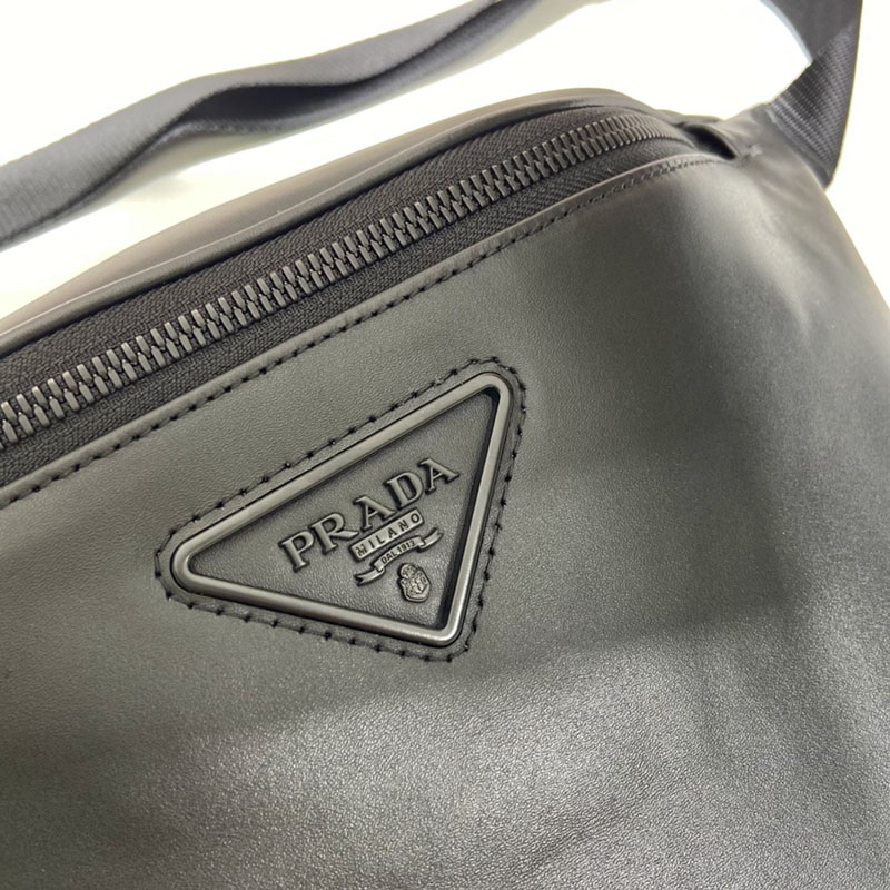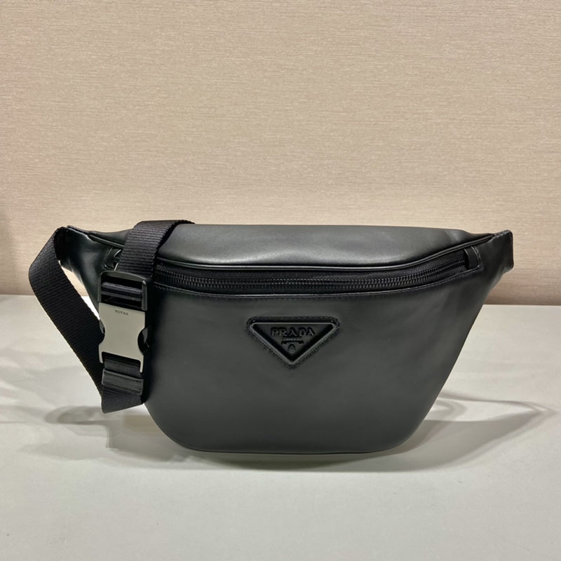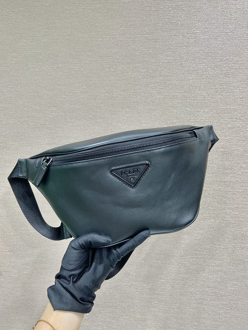 プラダ アウトレット PRADA Re-Nylon レザー ボディバッグ ベルトバッグ 2VL033 ブラック H品 プラダ ベルトバッグ メンズ