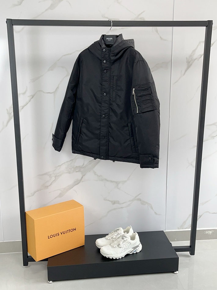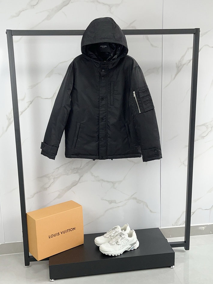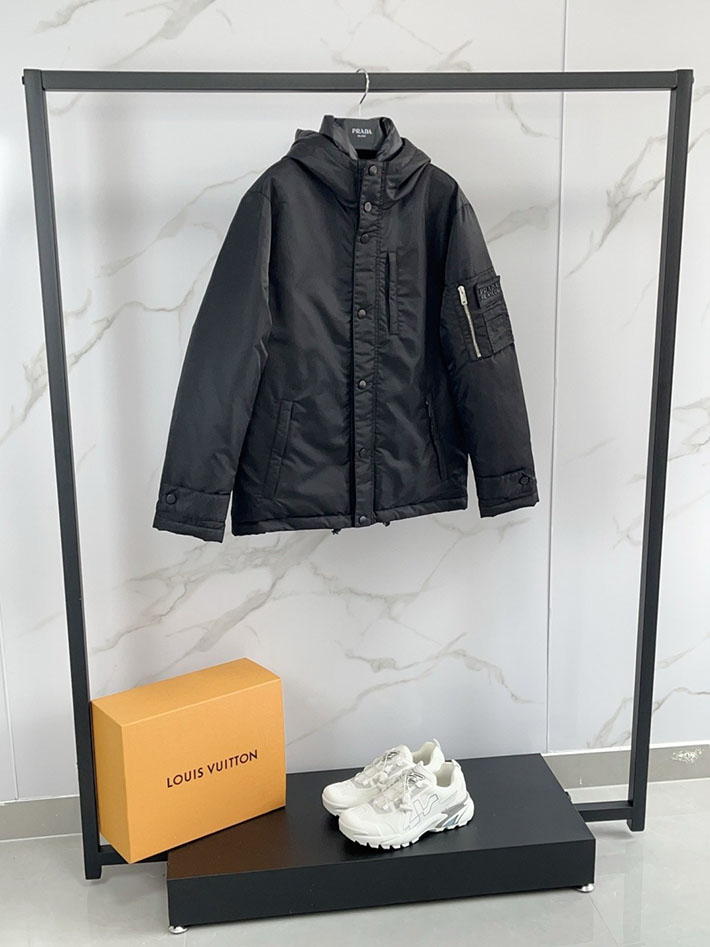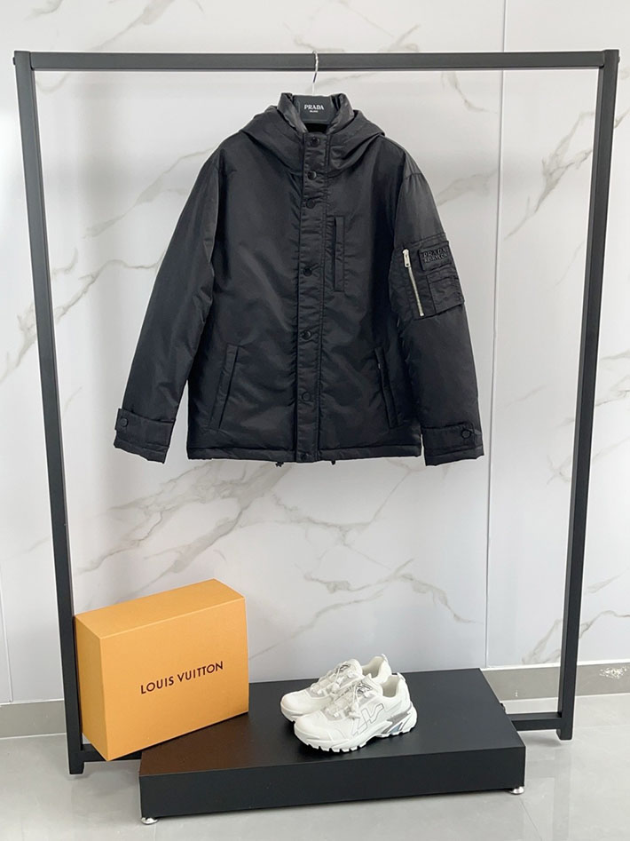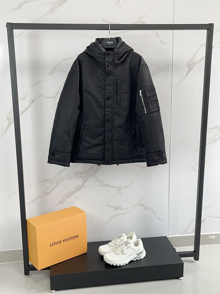 最高級プラダスーパーコピー PRADA フード付 テクニカルファブリック ダウンジャケット ブラック 2525105 プラダ ダウン メンズ アウトレット