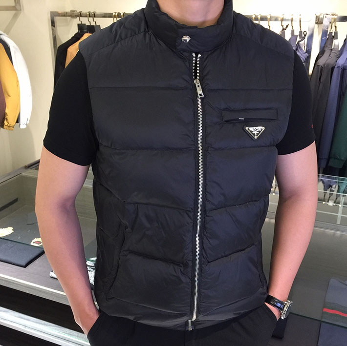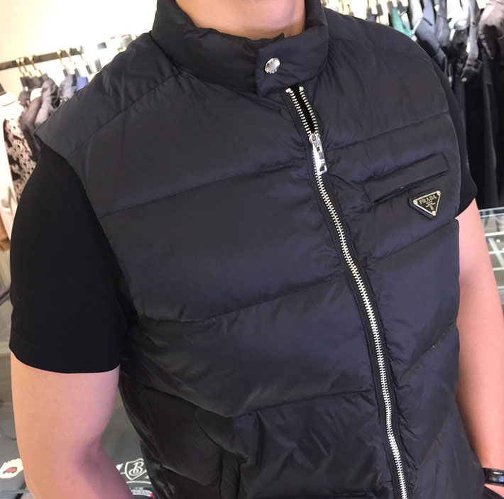 最高級プラダスーパーコピー PRADA パデッドRe-Nylon ベスト スタンドアップカラー ブラック 2525145 プラダ ダウンベスト メンズ