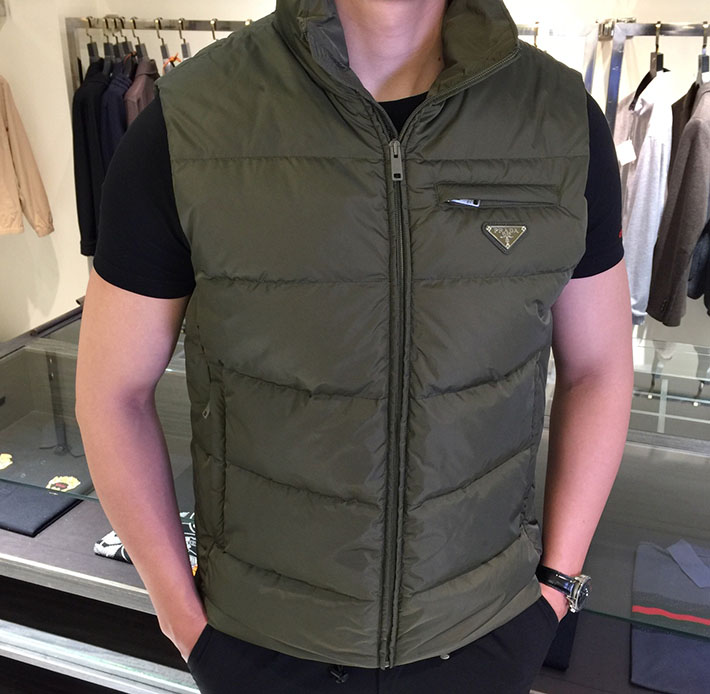 最高級プラダスーパーコピー PRADA ナイロン 三角ロゴダウンベスト カーキ 2525168 ダウンベスト おしゃれ メンズ