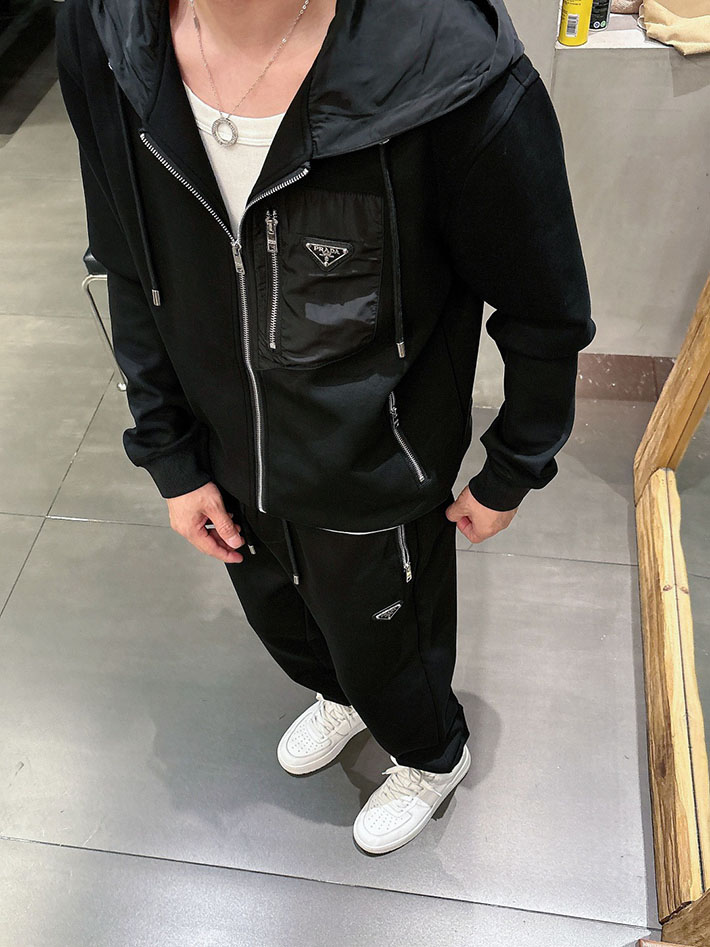 最高級プラダスーパーコピー PRADA カジュアルセットアップ 上下セット ブラック 2524671 プラダ メンズ かっこいい
