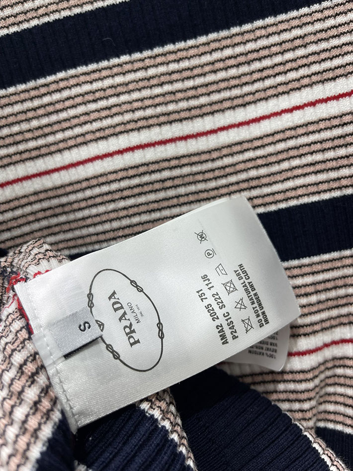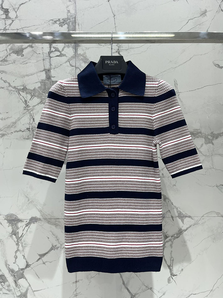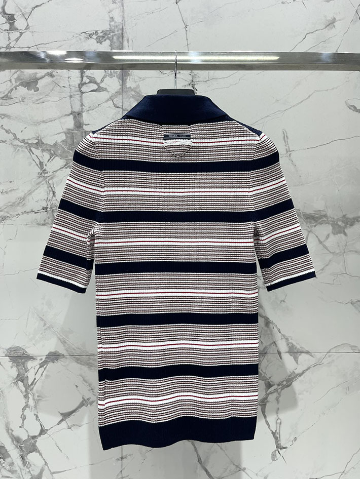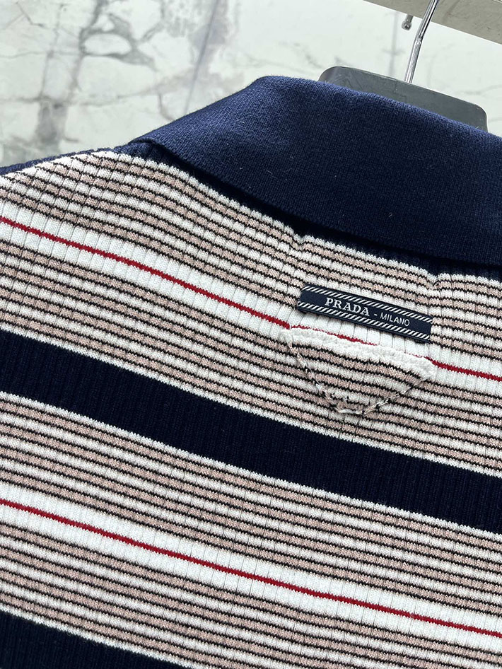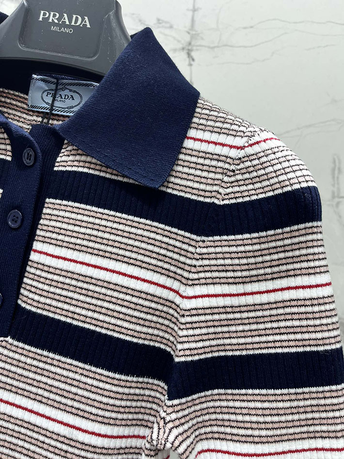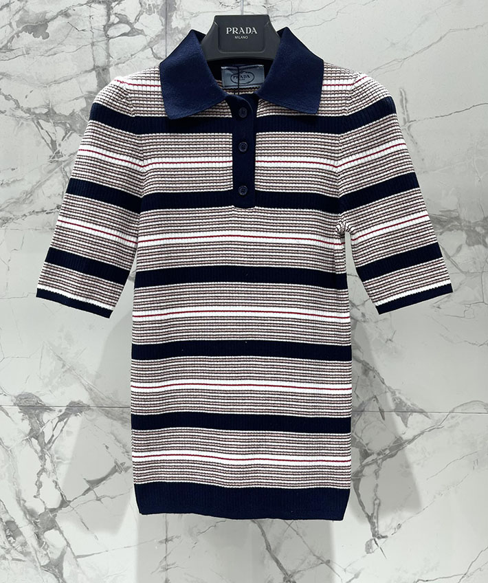最高級プラダスーパーコピー プラダワイシャツコピー ロゴ ストライプ コットン 半袖ニット ポロ 2523088 プラダ 半袖シャツ レディース