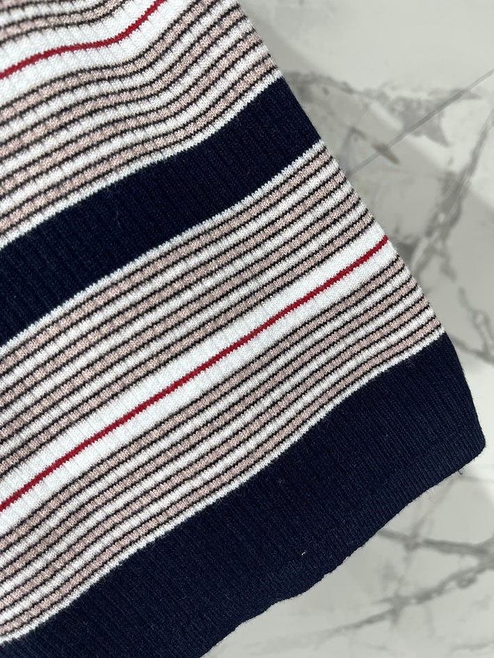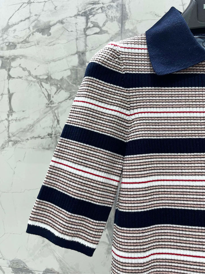 商品名:ロゴ ストライプ コットン 半袖ニット ポロ