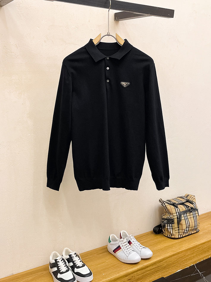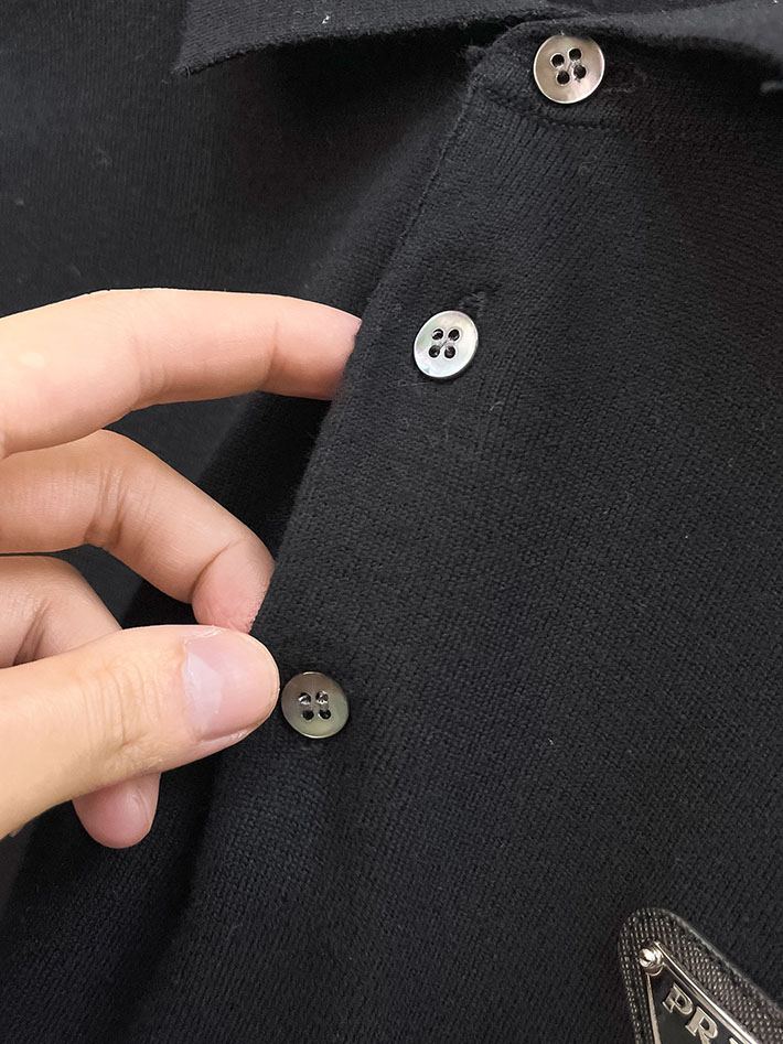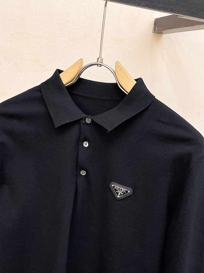 最高級プラダスーパーコピー PRADA ポロシャツ 長袖 メンズ ブラック 2524872 プラダ ポロシャツ アウトレット