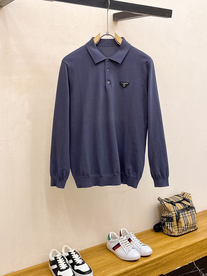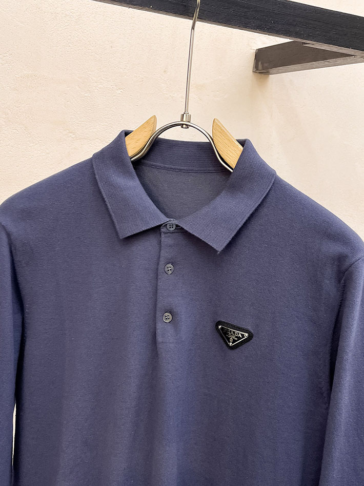 最高級プラダスーパーコピー PRADA ポロシャツ 長袖 メンズ ブルー 2524873 プラダ ポロシャツ アウトレット