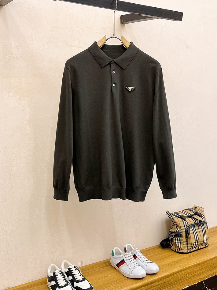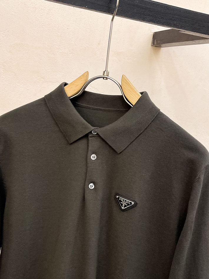 最高級プラダスーパーコピー PRADA ポロシャツ 長袖 メンズ ブラック 2524874 プラダ ポロシャツ アウトレット