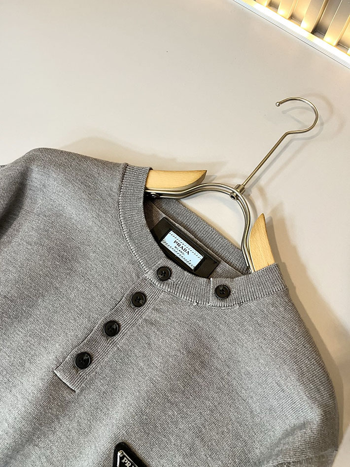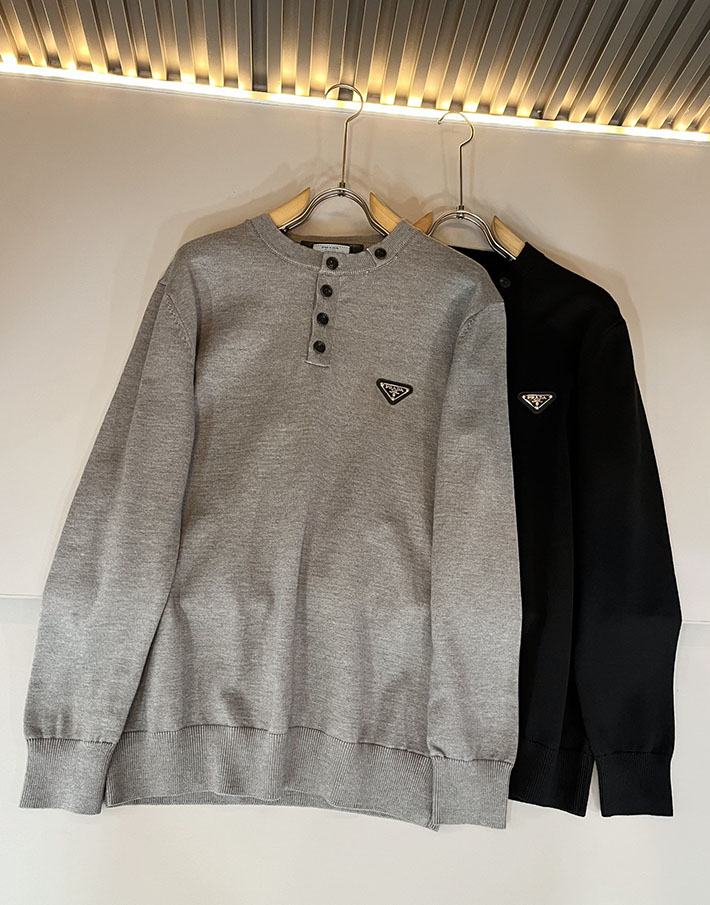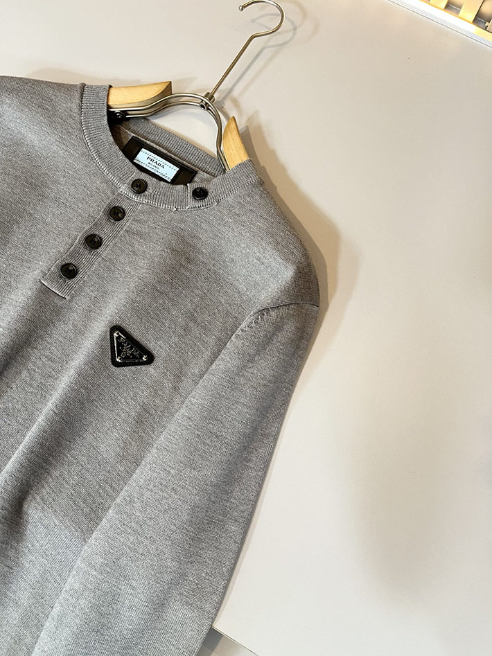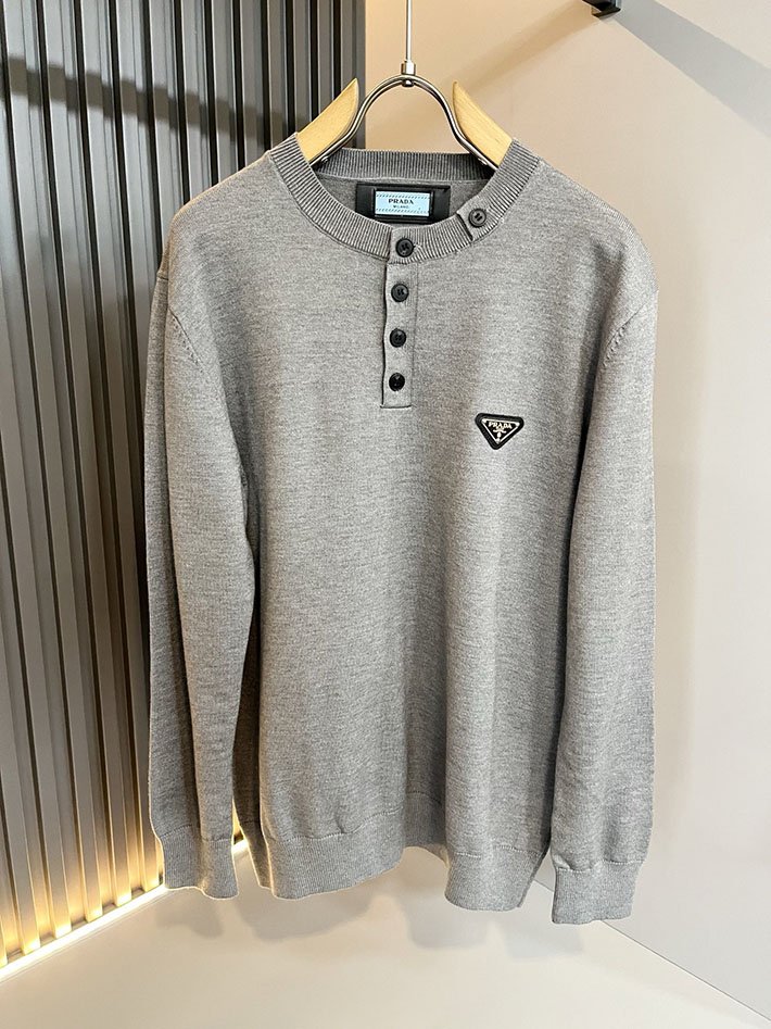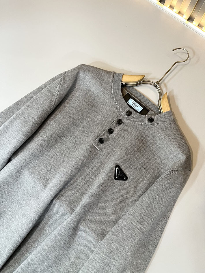 最高級プラダスーパーコピー PRADA トライアングル ロゴ プレート クルーネック トレーナー グレー 2524998 プラダ ニット メンズ