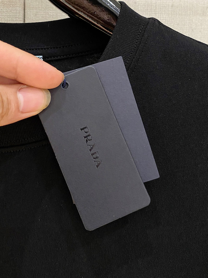 最高級プラダスーパーコピー プラダTシャツコピー Tシャツ・カットソー メンズ 2522388 ブラック N品 プラダ tシャツ アウトレット