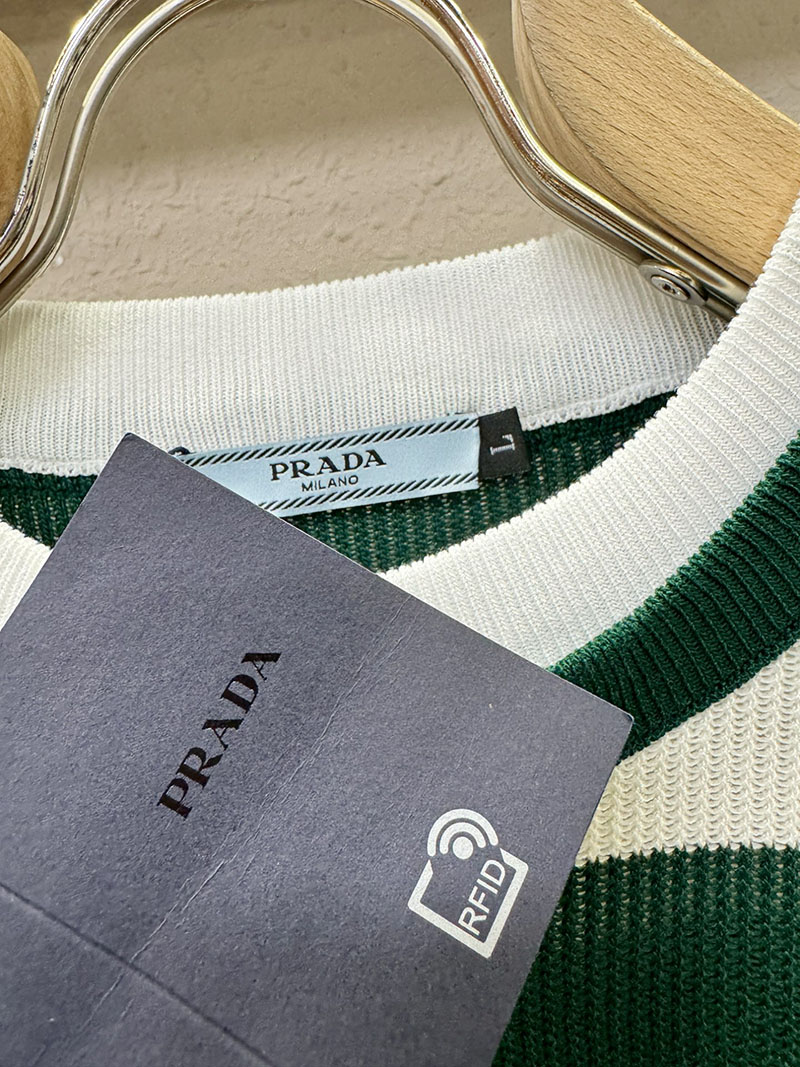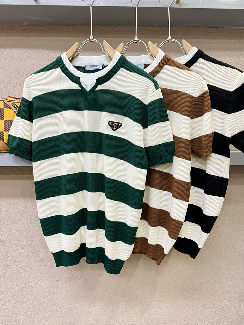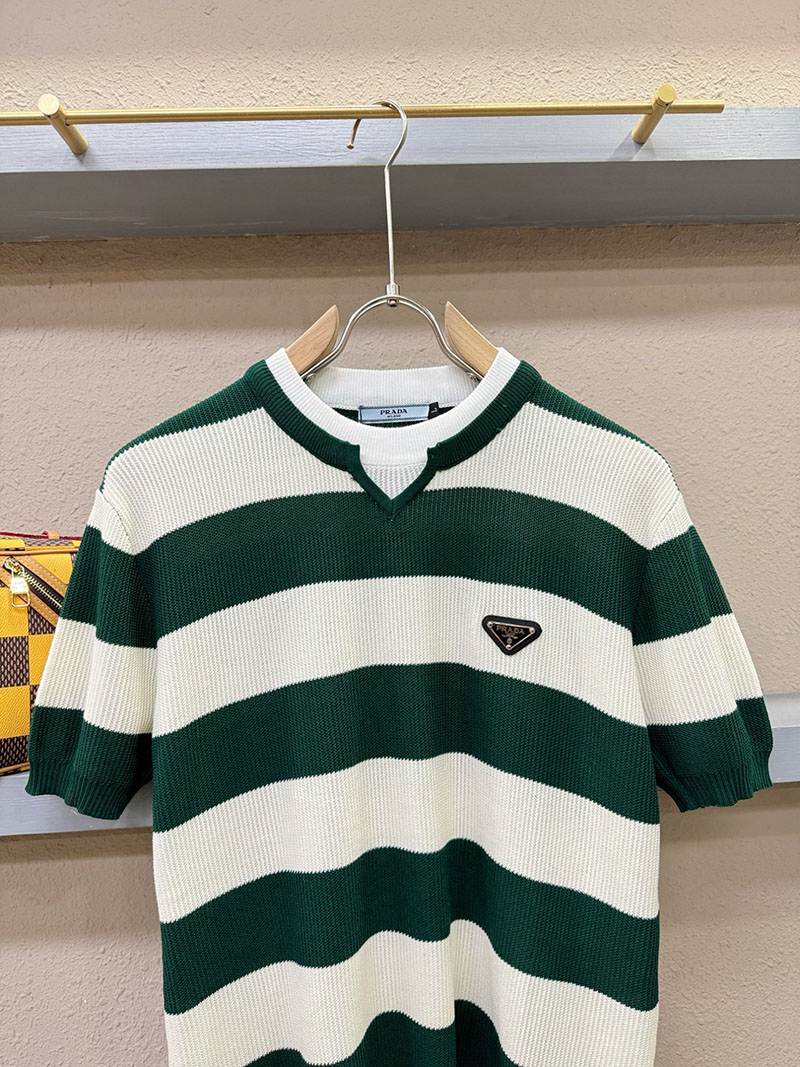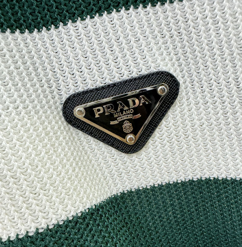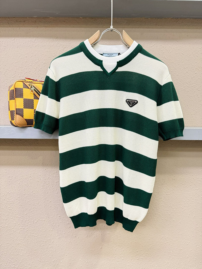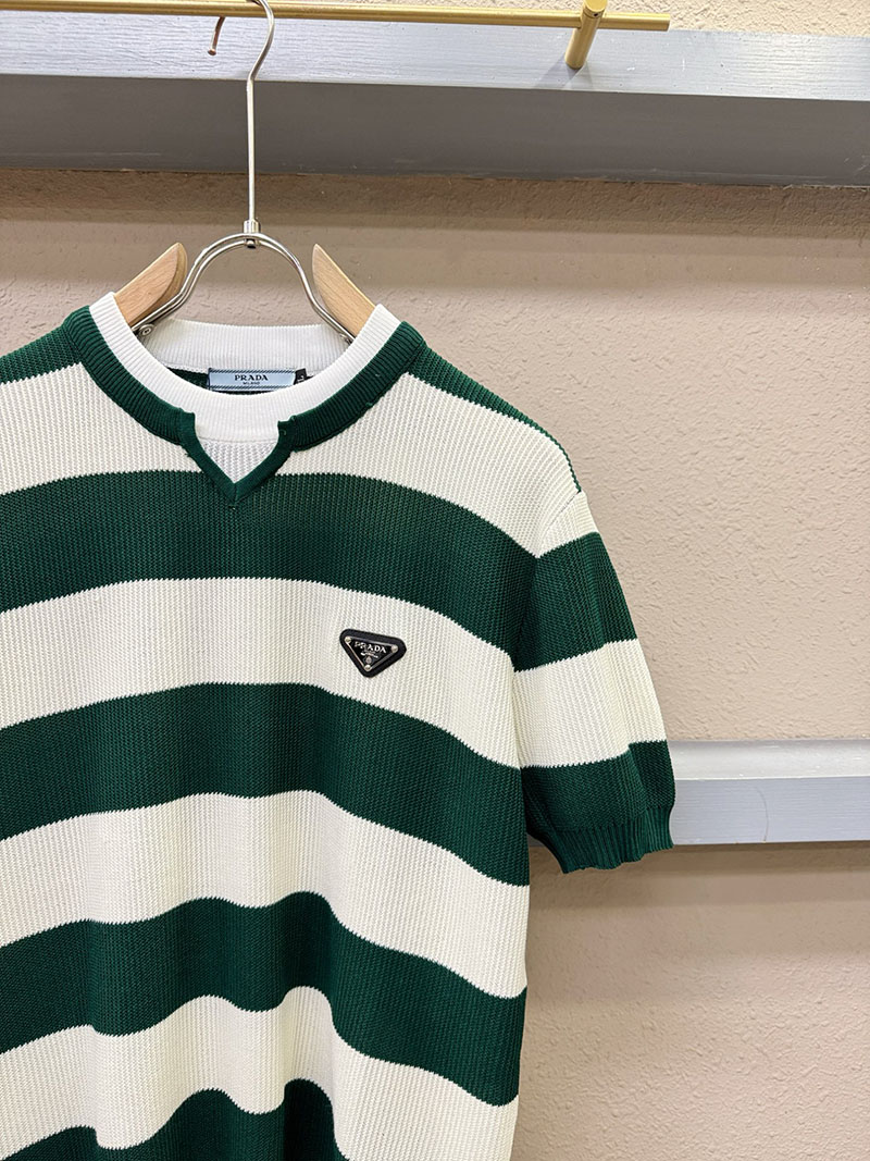最高級プラダスーパーコピー プラダTシャツコピー カーディガン ストライプ 半袖 2522409 ホワイト カーキ N品 プラダ ニット 半袖