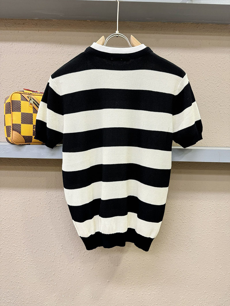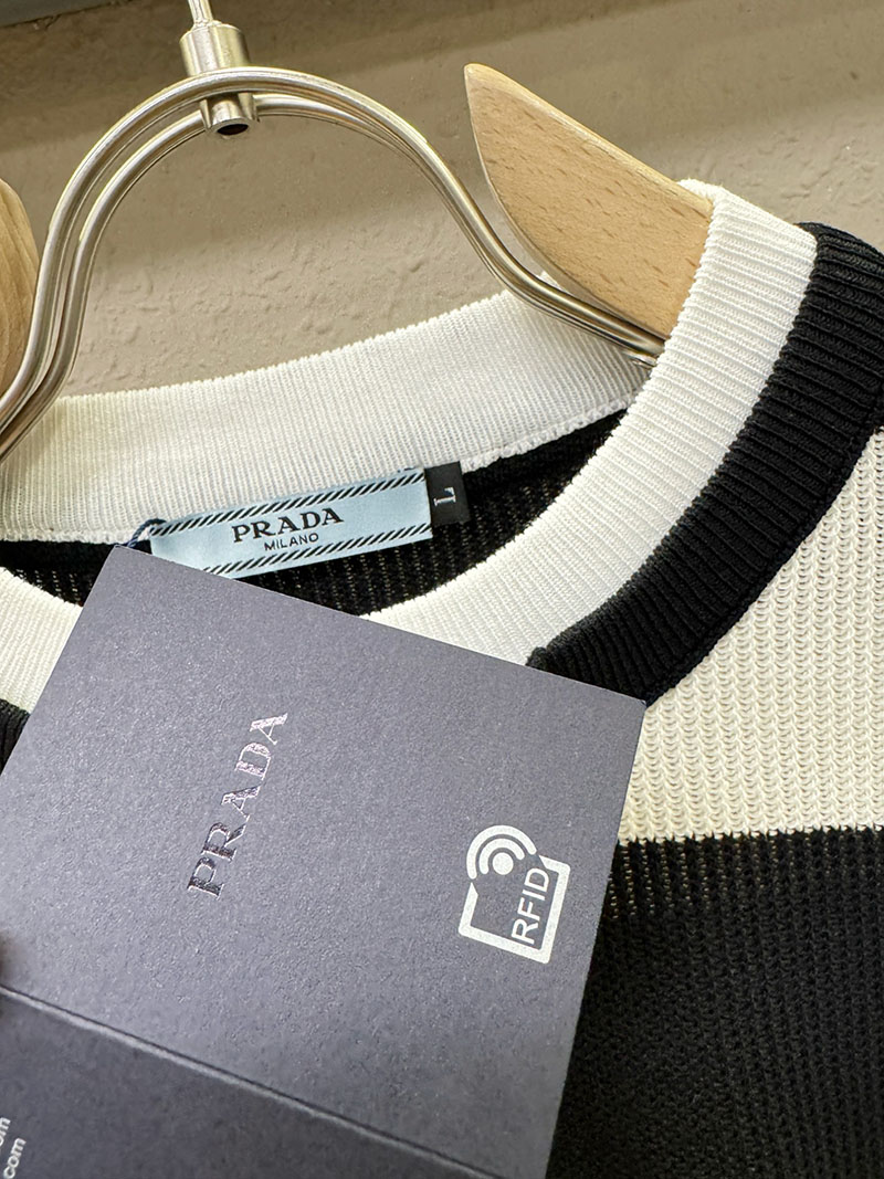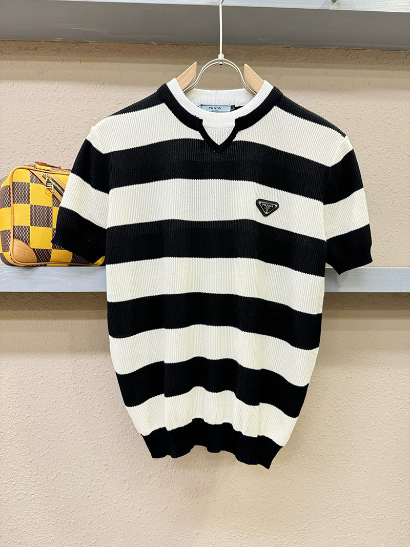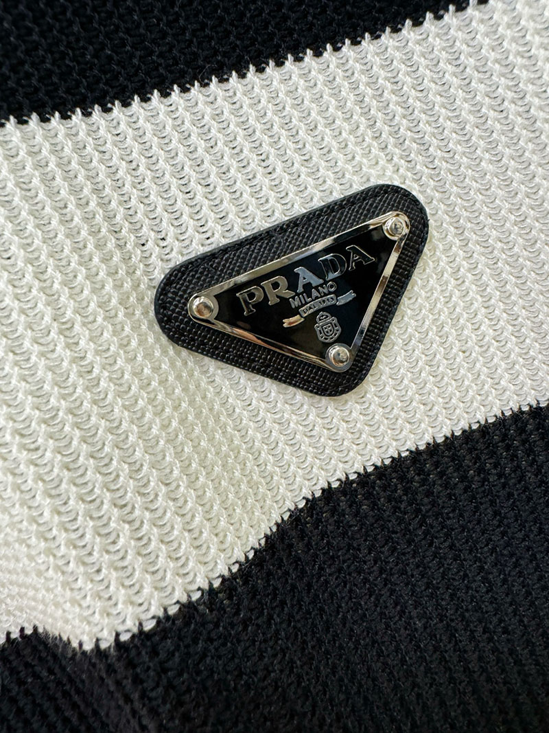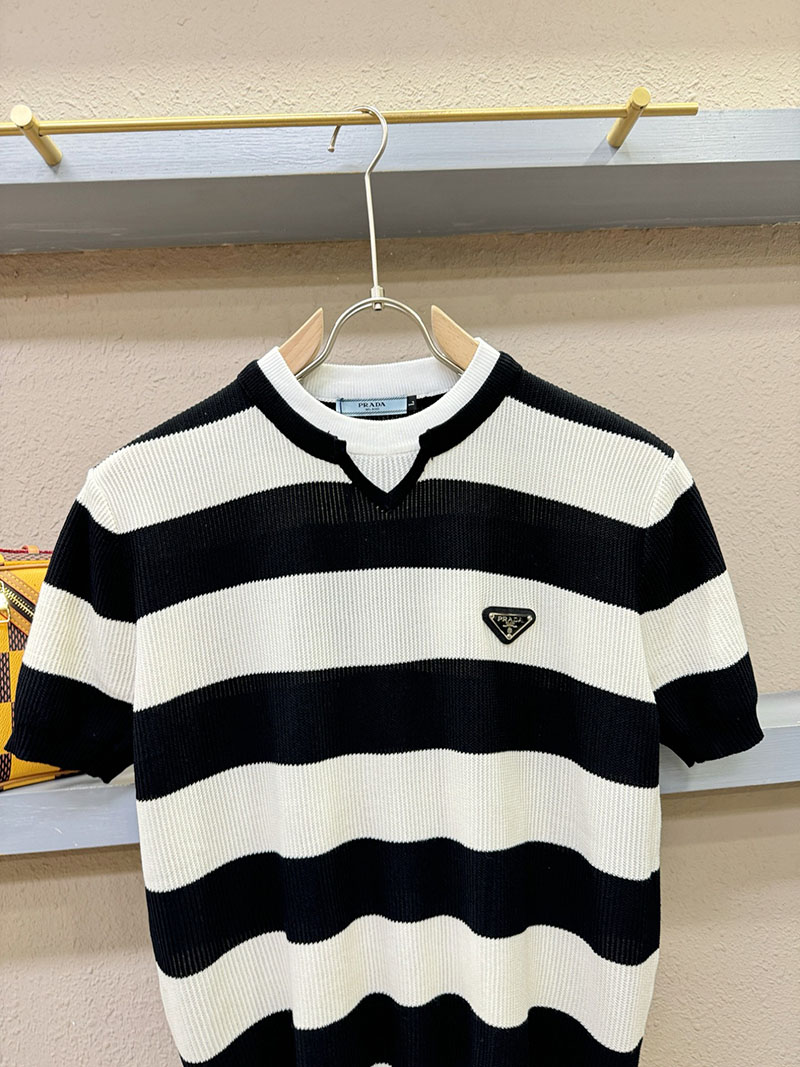 最高級プラダスーパーコピー プラダTシャツコピー カーディガン ストライプ 半袖 2522410 ホワイト ブラック N品 プラダ ニット 半袖
